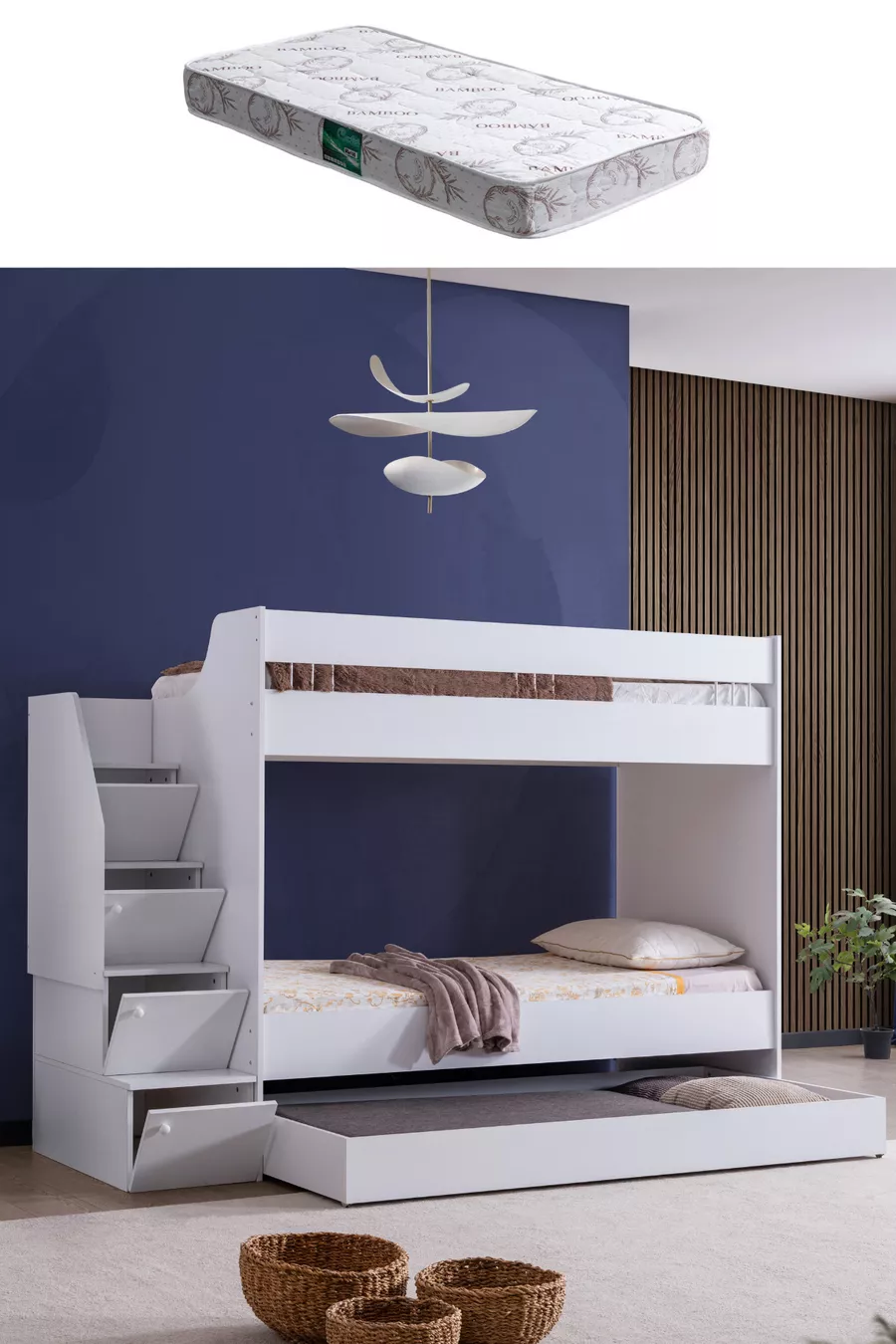 Ranza, Martin Letti a Castello per Bambini - 1 Materasso Comfort Bianco
