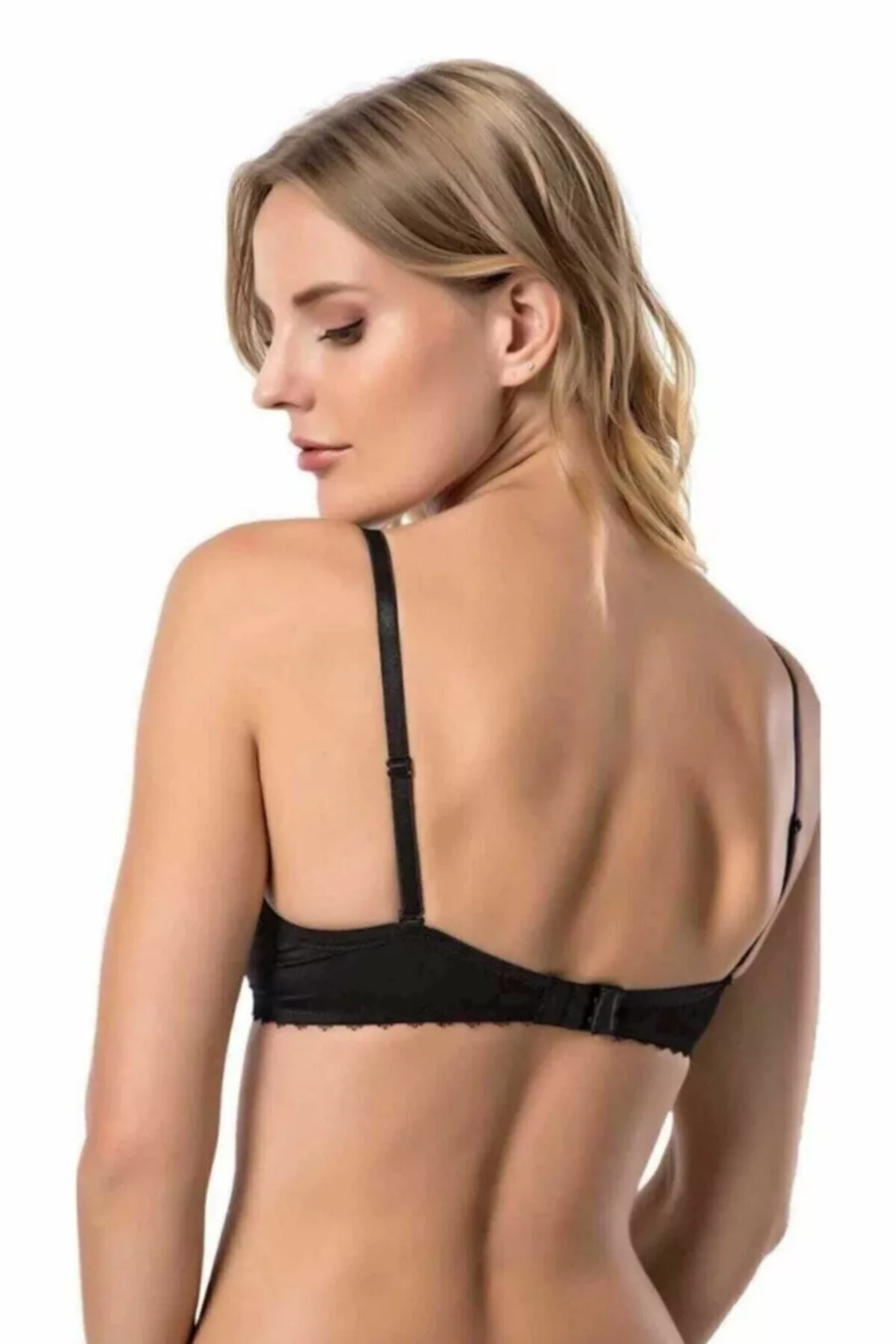 Reggiseno da donna nero taglia 2 con doppio supporto, coppa micro imbottita, dettagli in pietra magica