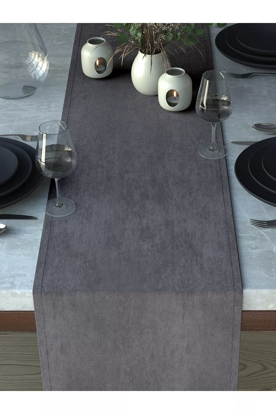 Runner in grigio argento effetto velluto