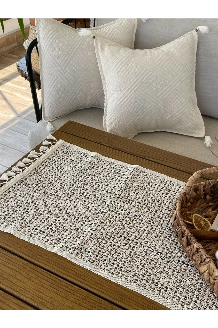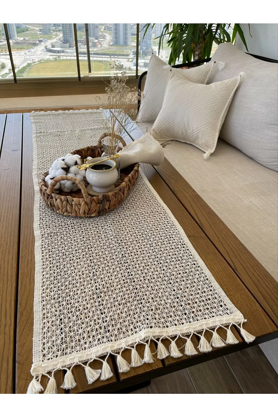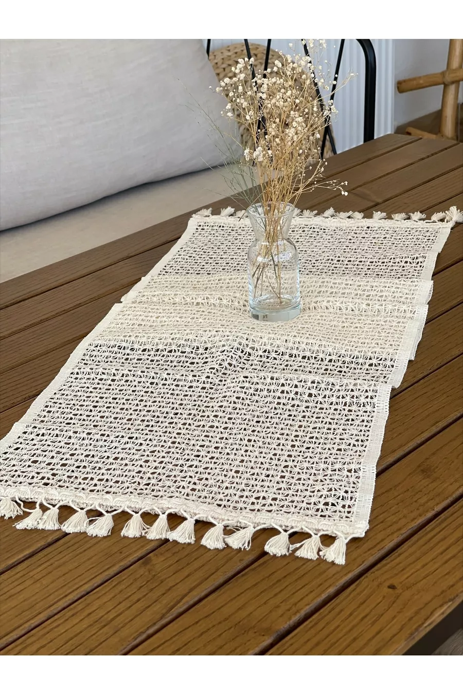 Dimensioni/Taglia: 145 x 37 Forma: Rettangolare Colore: Beige Materiale: Cotone Numero di pezzi: 1 pezzo Istruzioni per il lavaggio: Tipo 0