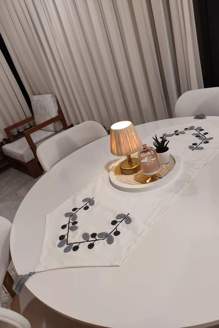 Dimensioni/Formato: 40 x 110 Forma: Rettangolare Colore: Grigio Materiale: Lino Numero di pezzi: 1 Istruzioni per il lavaggio: TYPE1 Composizione del materiale: Lino, Ricamo Punch, Frange Provenienza: TR