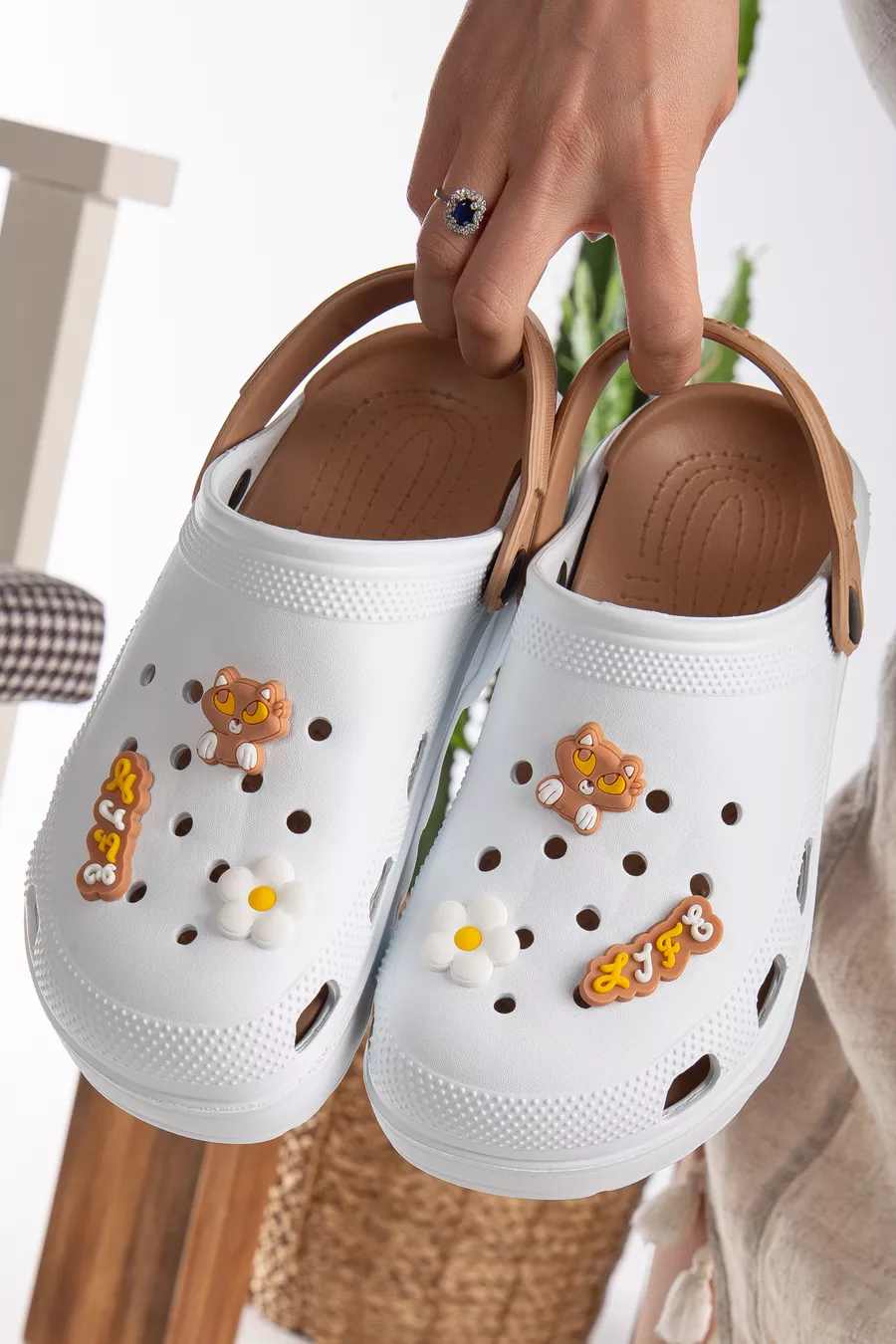 Materiale Superiore: PVC Stagione: Estate Tipo di Tacco: Tacco Basso Materiale Suola: EVA Altezza Tacco: Tacco Basso (1-4 cm) Materiale Soletta: PVC Materiale: EVA / PVC Colore: Marrone Materiale Fodera: EVA Chiusura: Con Fascia Persona: Fashion Forward Caratteristica Extra: Nessuna Caratteristica Extra Dettaglio Sostenibilità: No Occasione: Casual/Quotidiano Istruzioni di Lavaggio: tipo4 Motivo: Liscio Tipo di Tessuto: Tessuto Collezione: Unisex Origine: TR Condizione Scatola: Nessuna Scatola Materiale Esterno: Pelle Sintetica