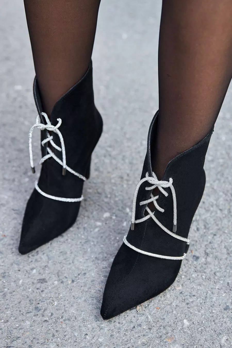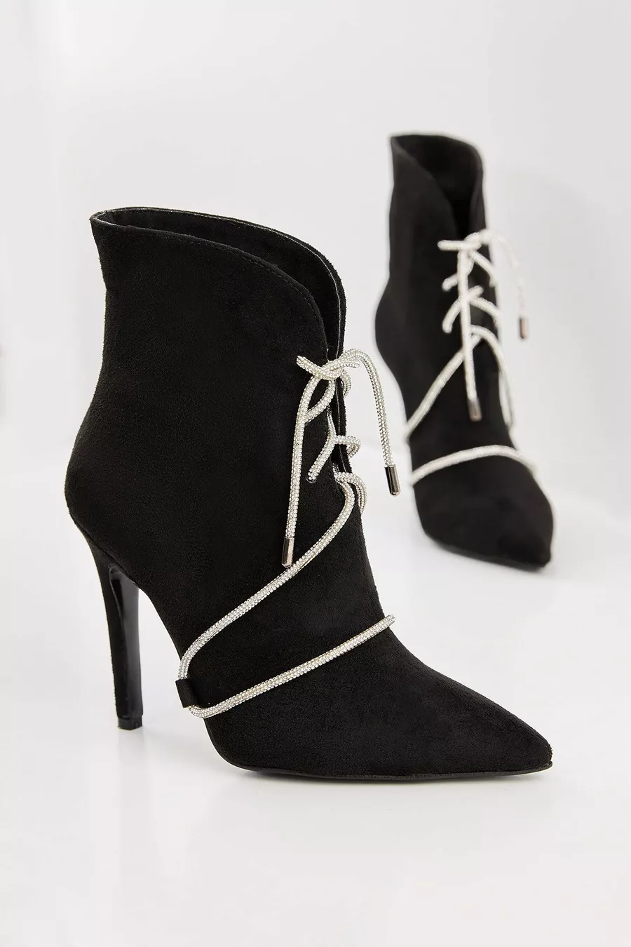 Sanem Stivali a punta alla moda in pietra scamosciata nera