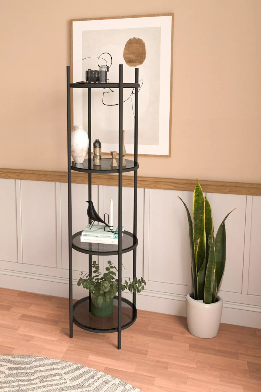 Suggerimento: Classico Materiale: Vetro Colore: Nero Altezza: 151 cm Larghezza: 41 cm Profondità: 41 cm Numero di ripiani: 3 Materiale del corpo: Metallo Stile: Scandinavo Tema / Stile: Scandinavo Origine: TR
