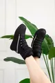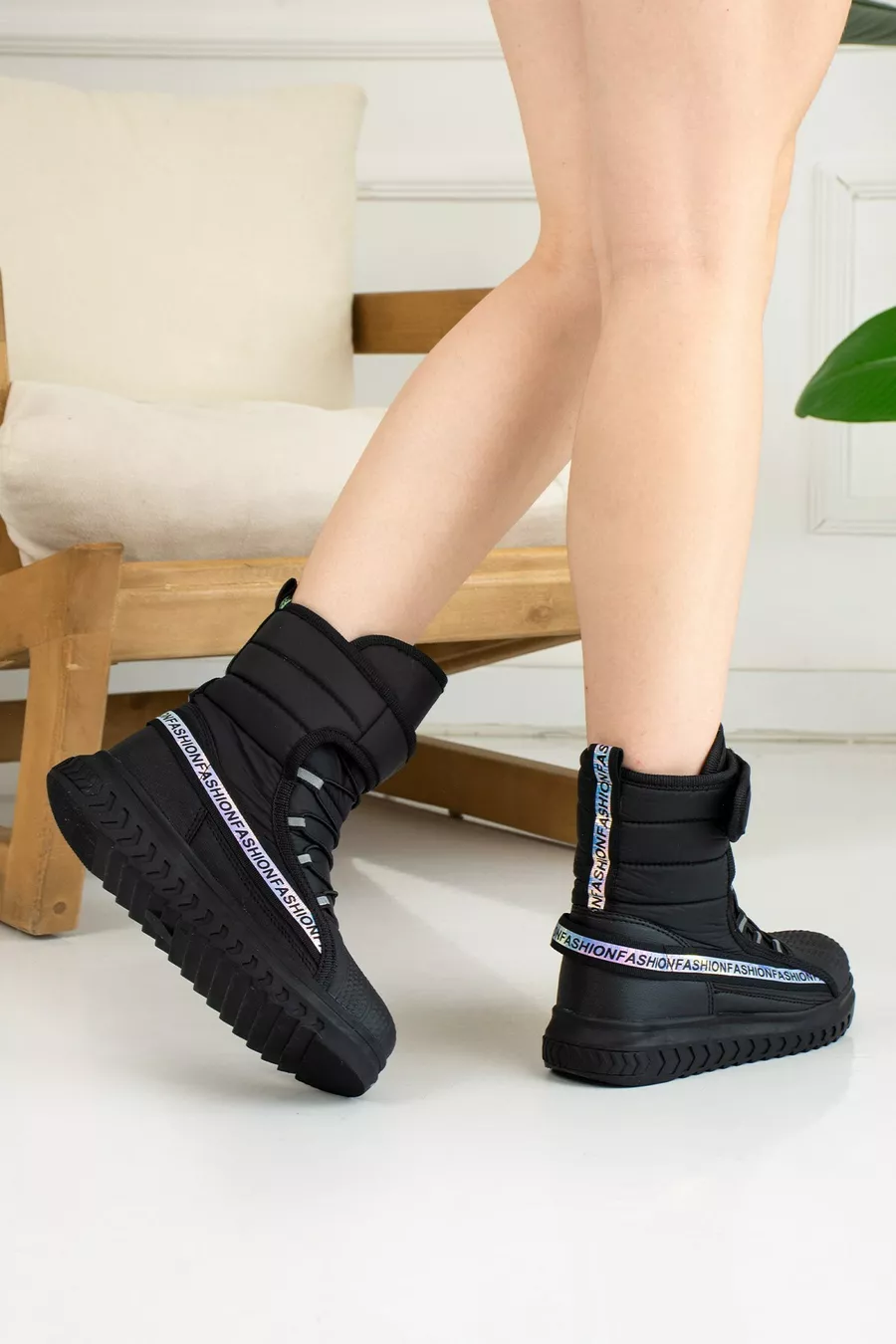 Scarpa da neve nera unisex per adulti e bambini, giornaliera, con interno in pelliccia, chiusura a strappo e suola antiscivolo