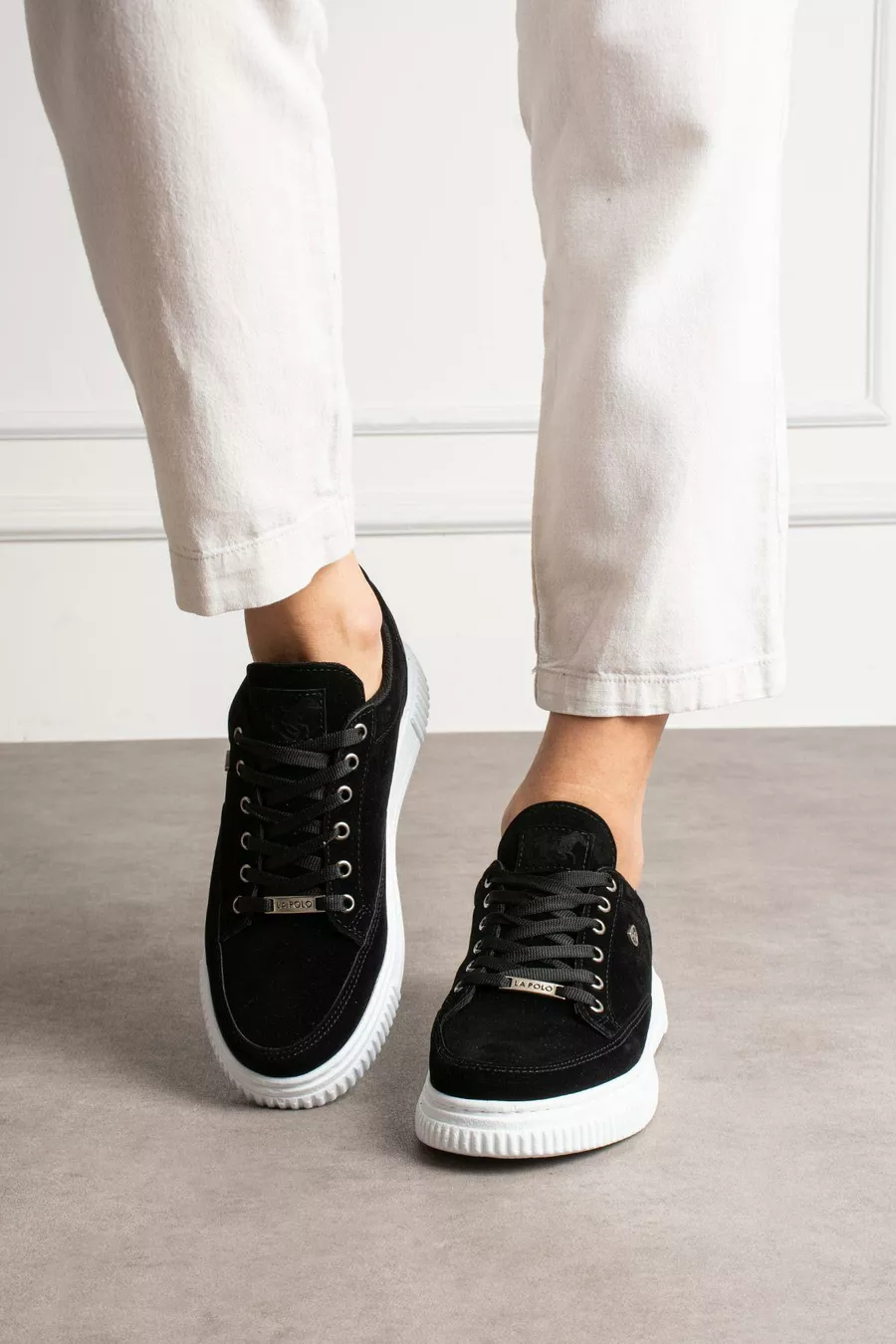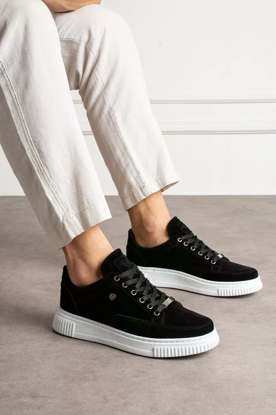 Scarpe da uomo sneakers nere e bianche in pelle scamosciata con vestibilità comoda