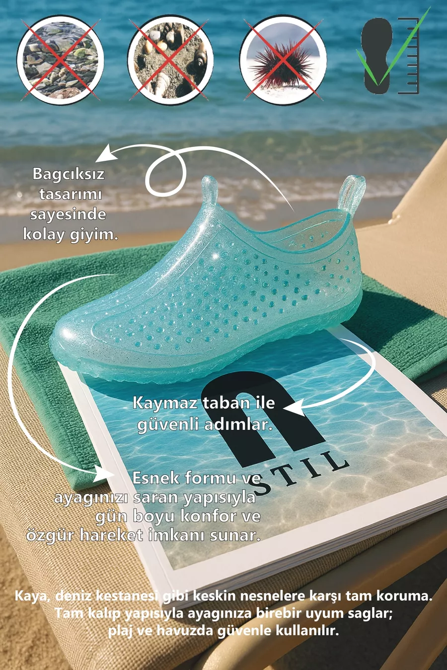 Scarpe da mare unisex quotidiane turchesi con glitter, suola resistente antiscivolo, sandali per piscina, spiaggia e rafting