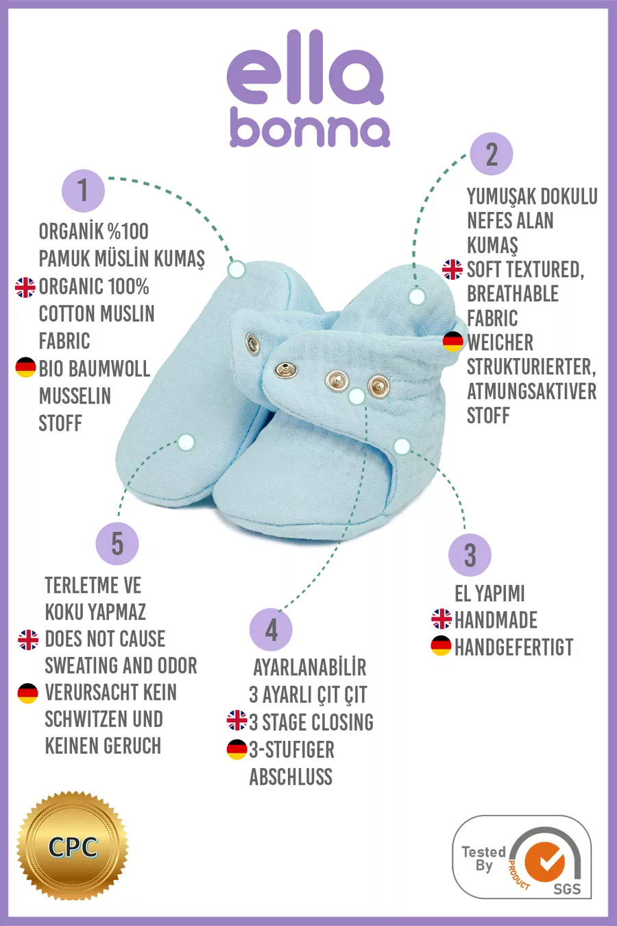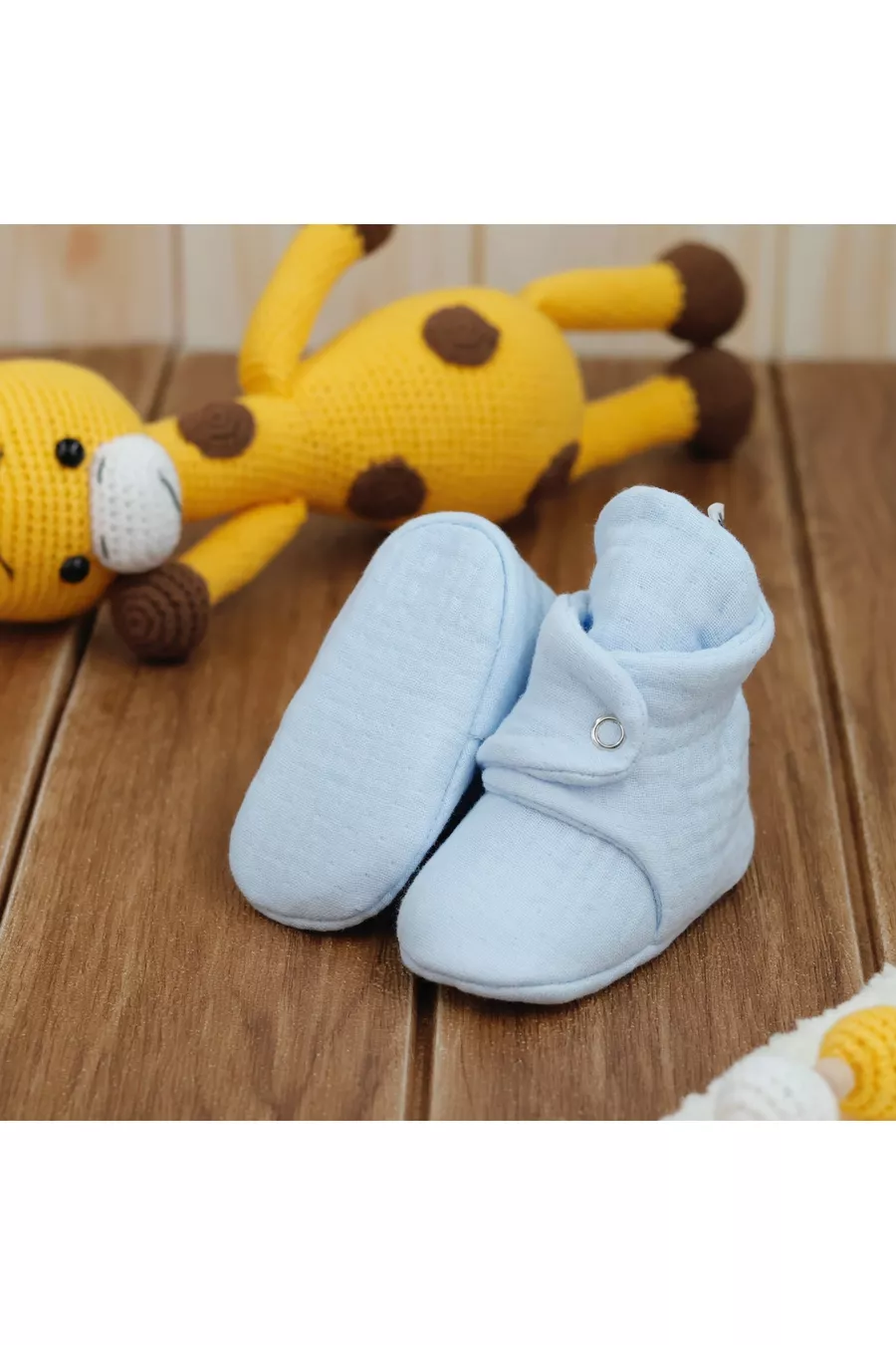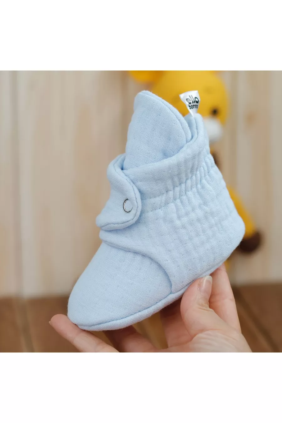 Scarpine per neonati in mussola di cotone biologico, pantofole per neonati, blu