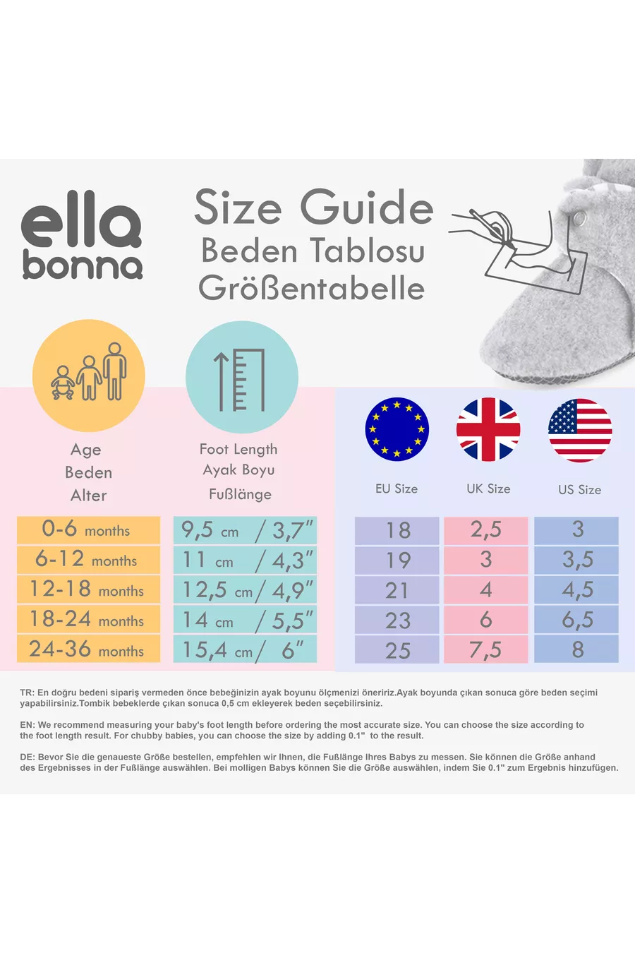Lavaggio a mano: Usare acqua tiepida (non superiore a 30°C). Scegliere un detersivo delicato adatto ai bambini. Strofinare delicatamente le pantofole e risciacquare. Lavaggio in lavatrice (se disponibile): Programma delicato, a bassa temperatura (30°C). Mettere le pantofole in un sacchetto per il lavaggio. Asciugatura: Lasciare asciugare all'ombra, evitando la luce diretta del sole. Non asciugare mai in asciugatrice. Avvertenze generali: Non usare candeggina o detergenti chimici. Non tirare né torcere il prodotto.