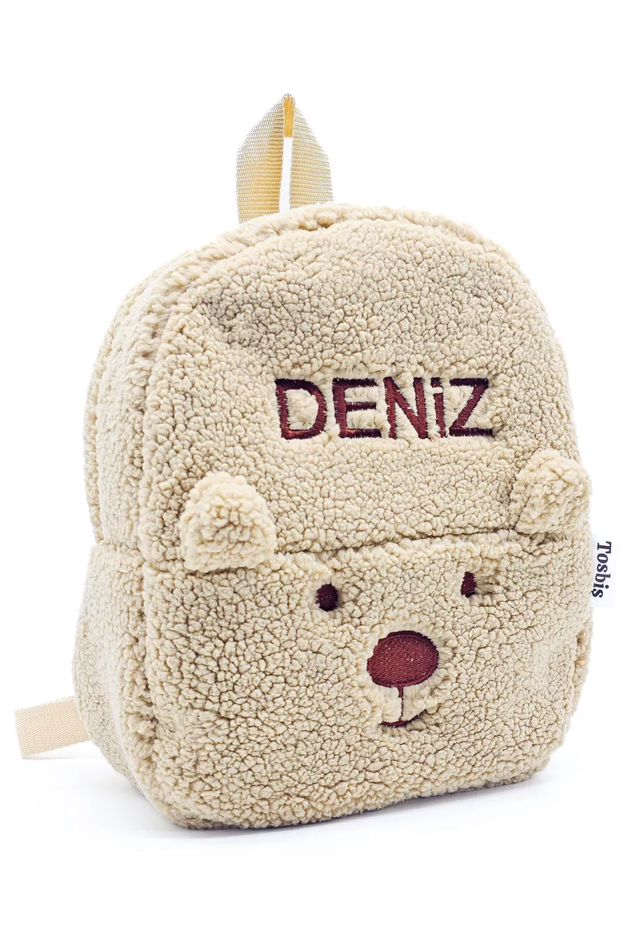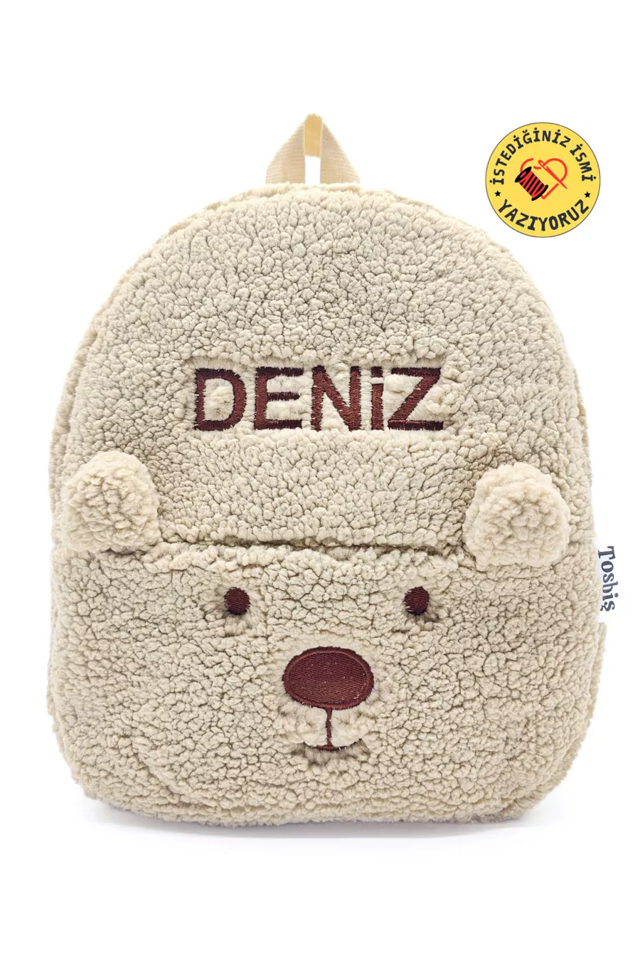 [ SCRIVIAMO IL NOME CHE VUOI ] Orsetto Beige (FIGURA+NOME) Zaino per Bambini 0-8 Anni, Asilo - Scuola Materna