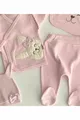 Set 5 pezzi per neonato con orsacchiotto ricamato in tessuto organico Allegri Bebè, uscita dall'ospedale, rosa