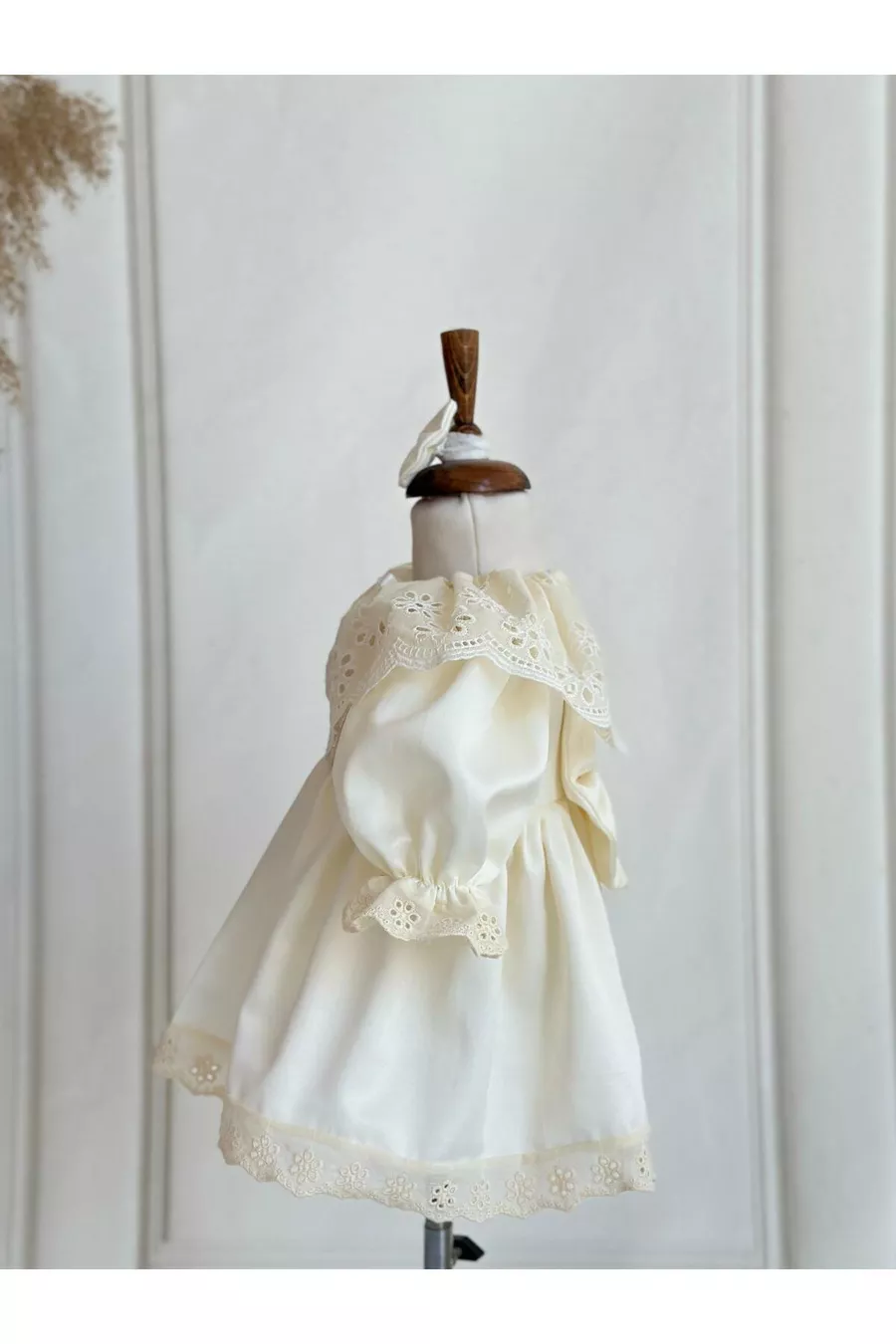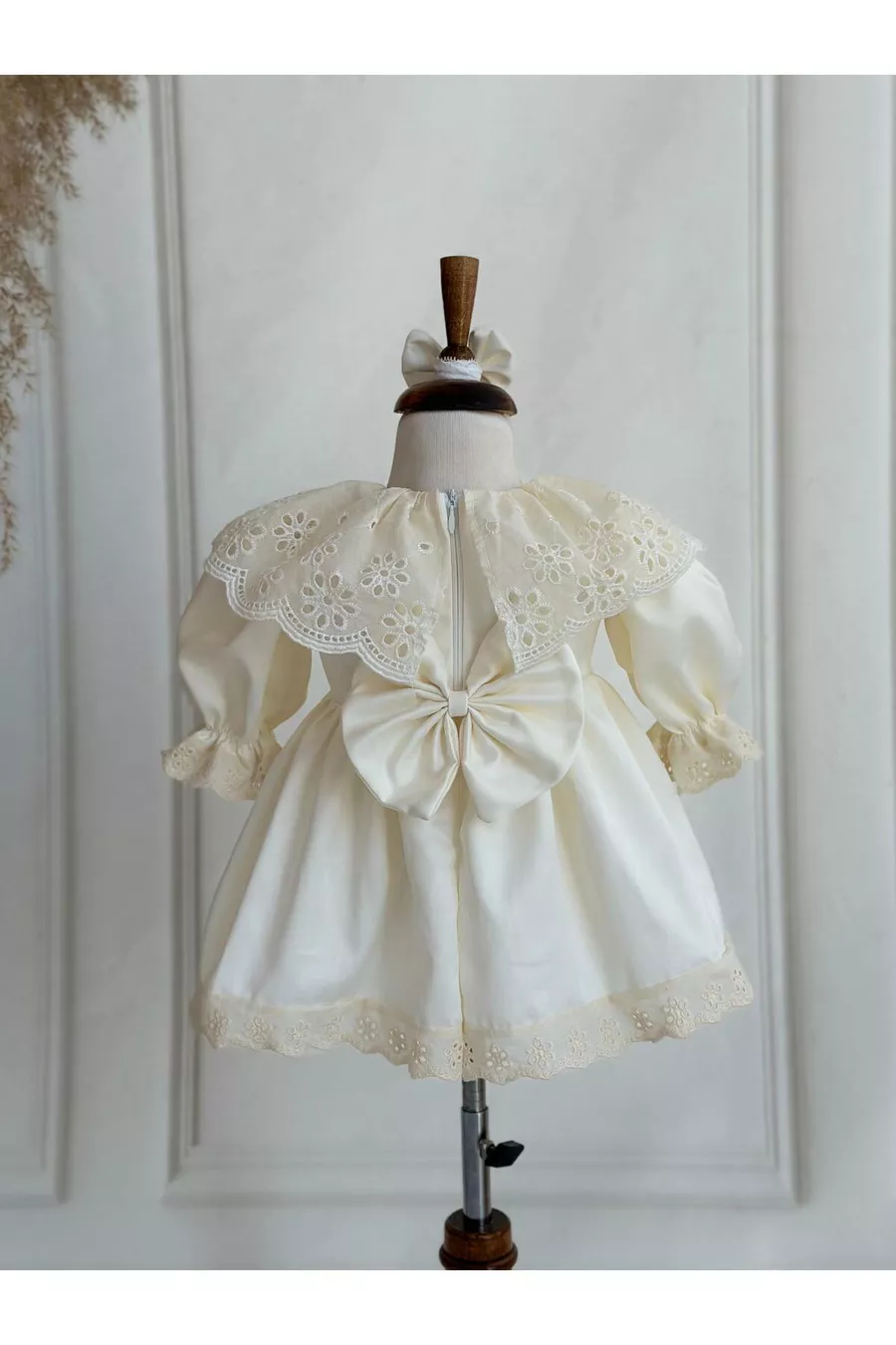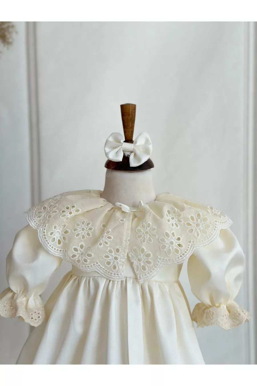 Set Abito Cerimonia Neonato Bambino con Crema di Camomilla, Collare Mantella e Maniche a Palloncino