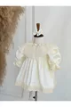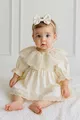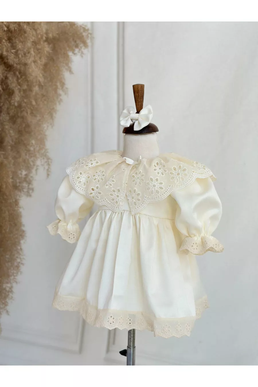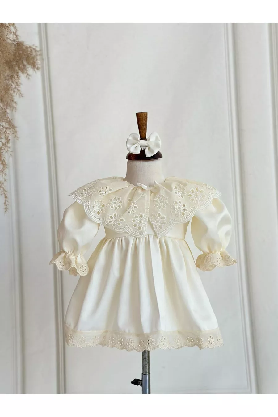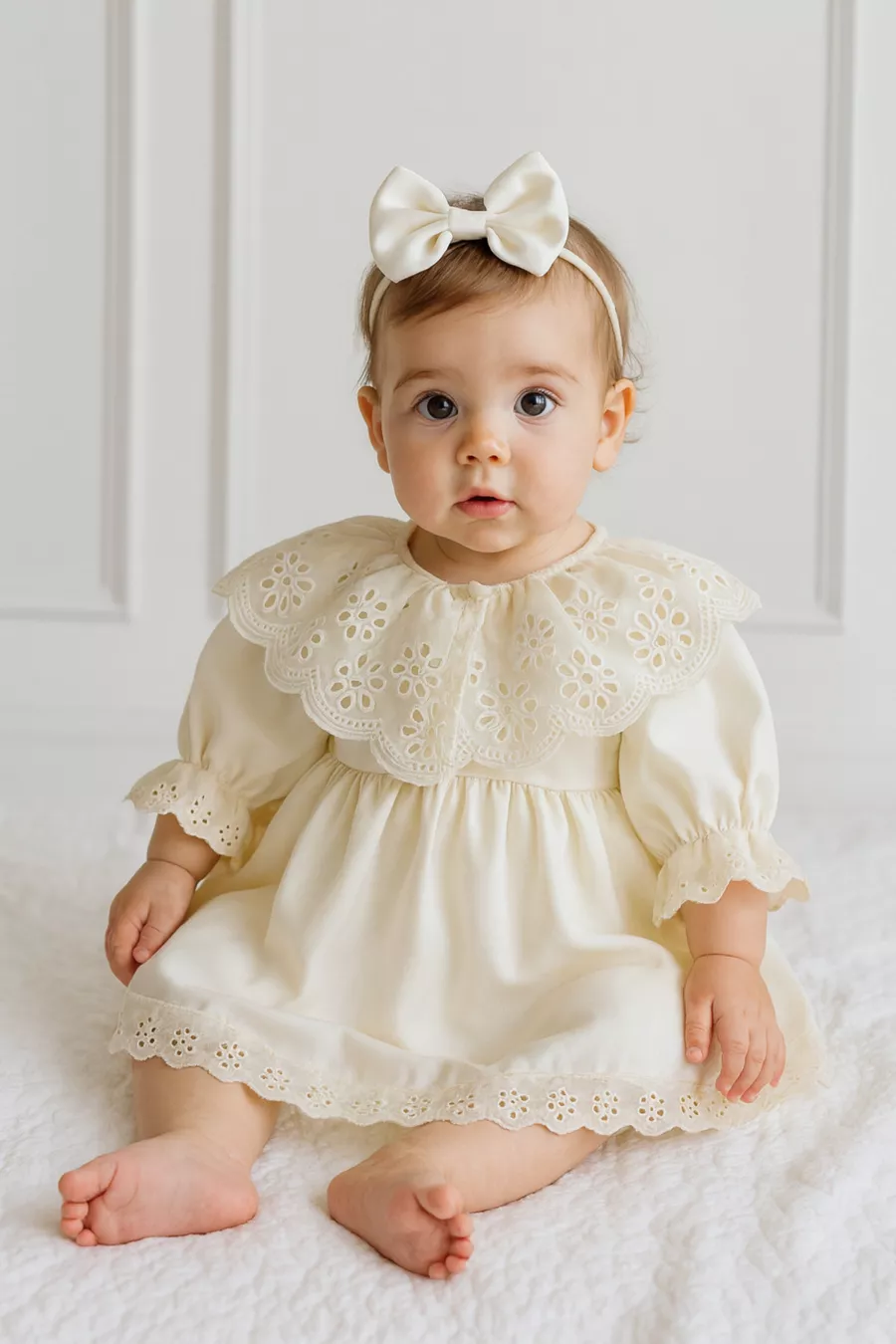 Set Abito Cerimonia Neonato Bambino con Crema di Camomilla, Collare Mantella e Maniche a Palloncino