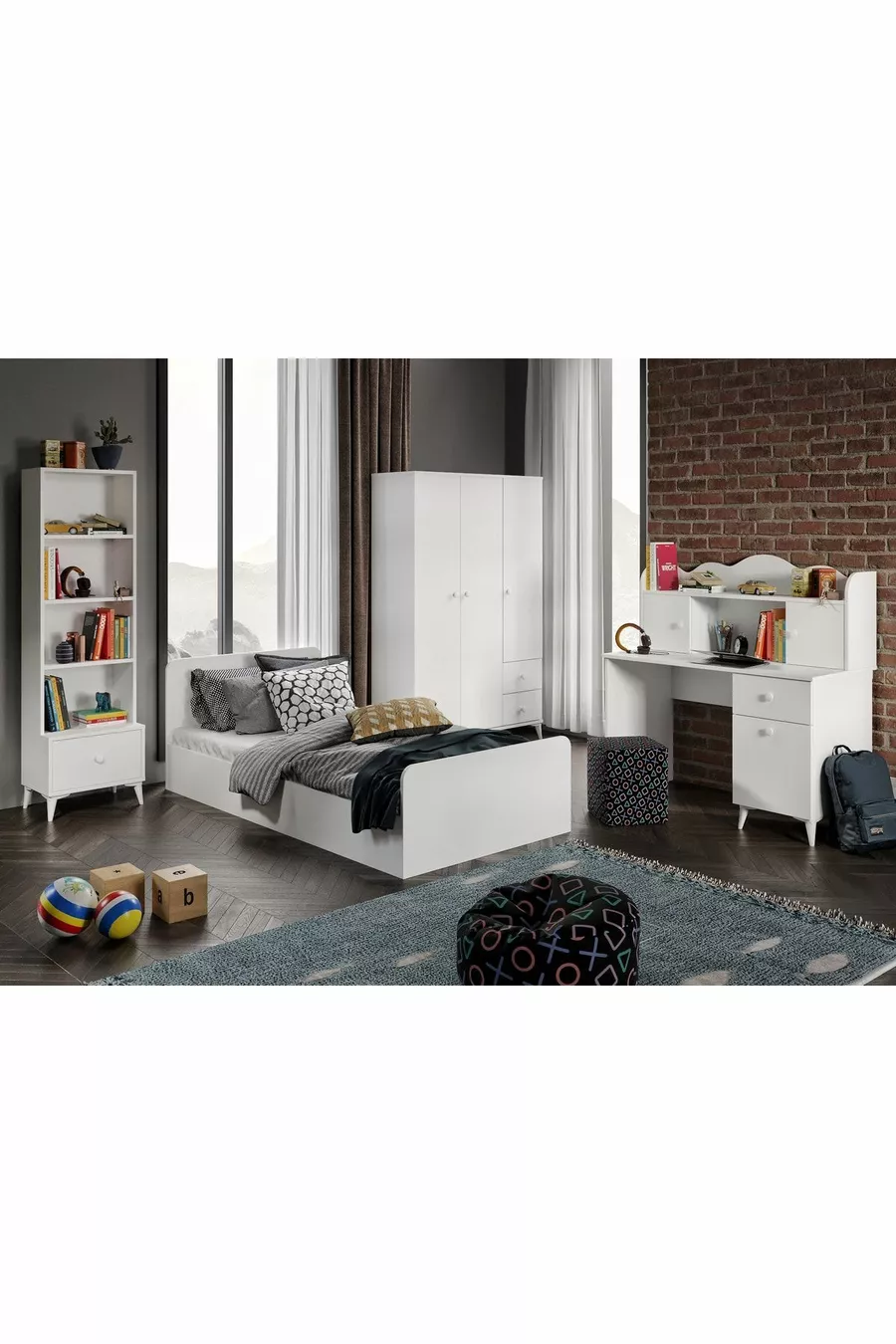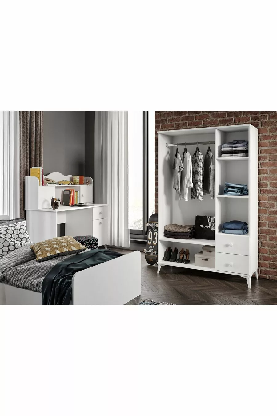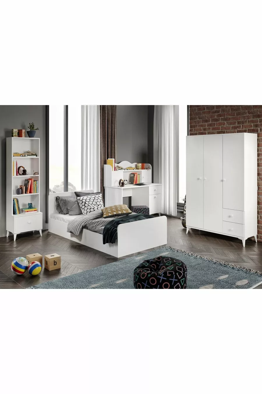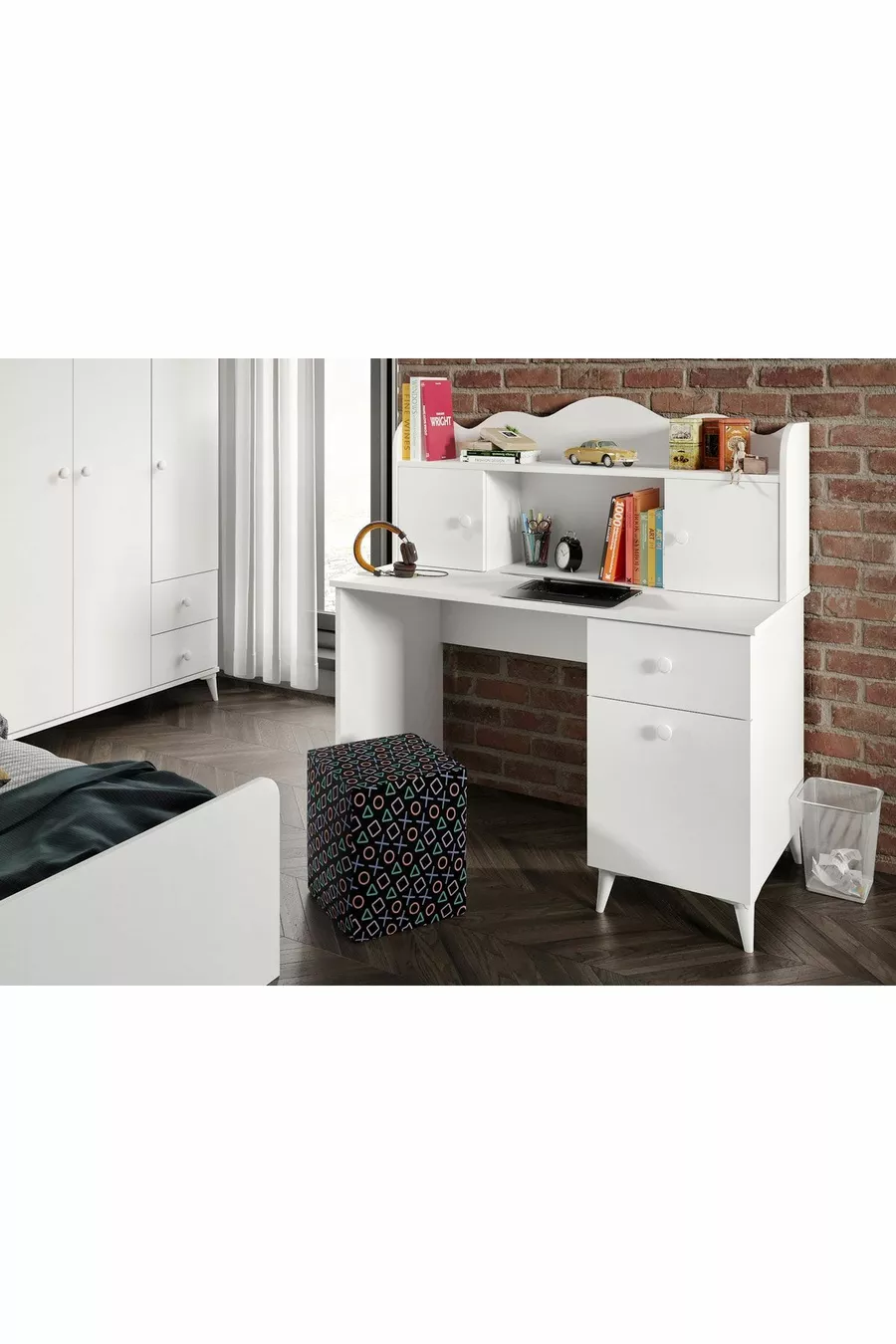 Set Camera da Letto Moderna per Giovani Akasya Bianca - 4 Pezzi e Interamente in MDF di Prima Qualità