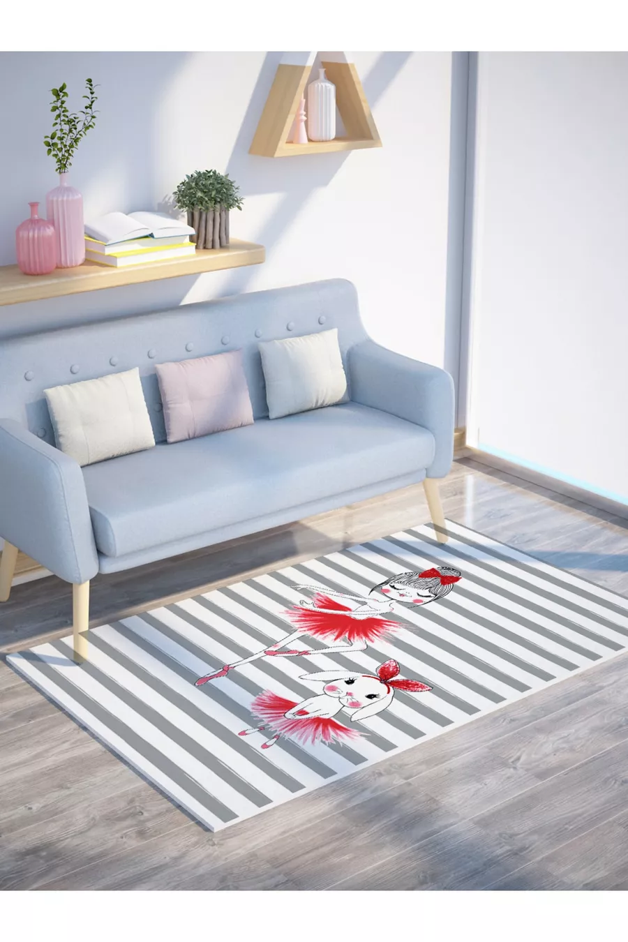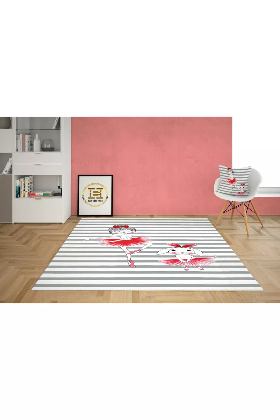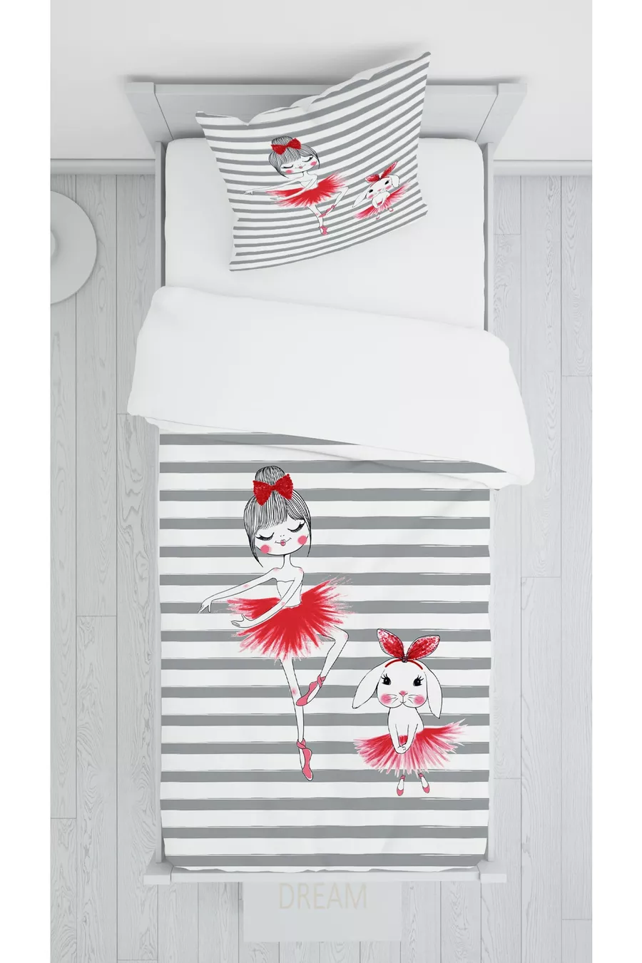 Set Camera per Bambina Ballerina con Strisce Grigie (Tenda, Copriletto e Cuscini - Tappeto)