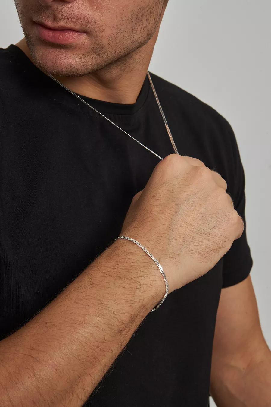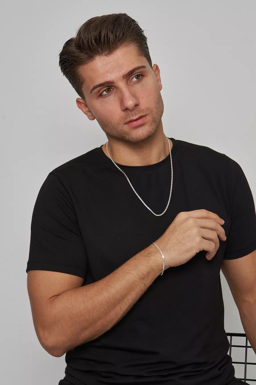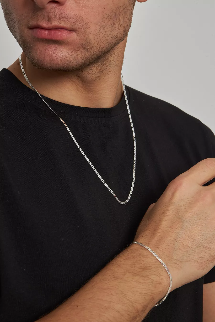 Set collana e bracciale da uomo in argento regolabile con barra da 2,5 mm