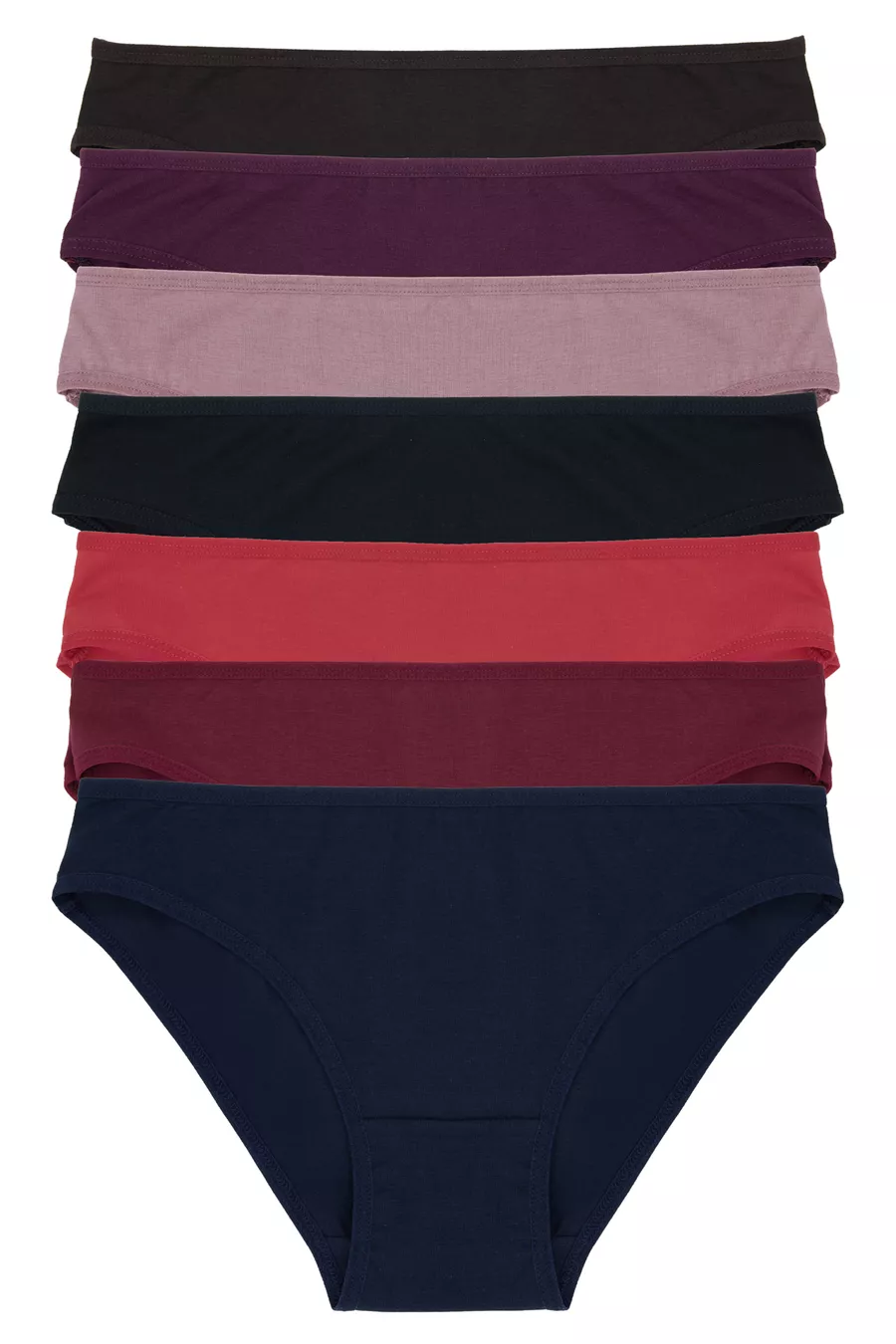 Set da 7 mutande da donna in cotone bordeaux elasticizzato