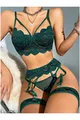 Set da donna russo in verde smeraldo con 5 pezzi di lingerie fantasia con pizzo e reggicalze