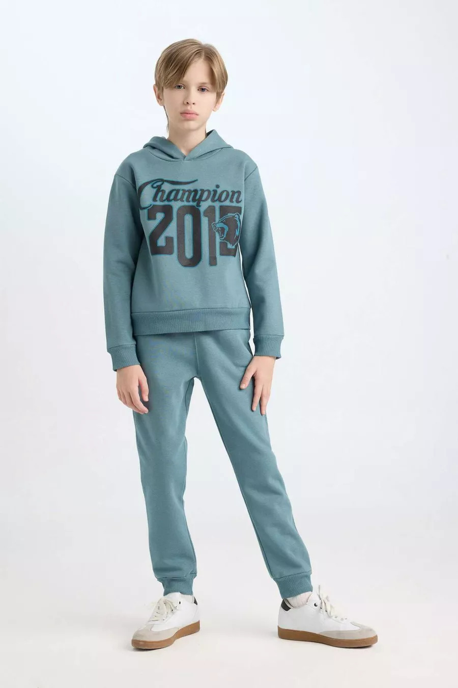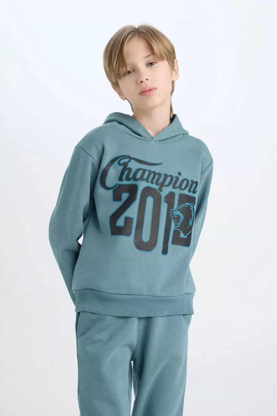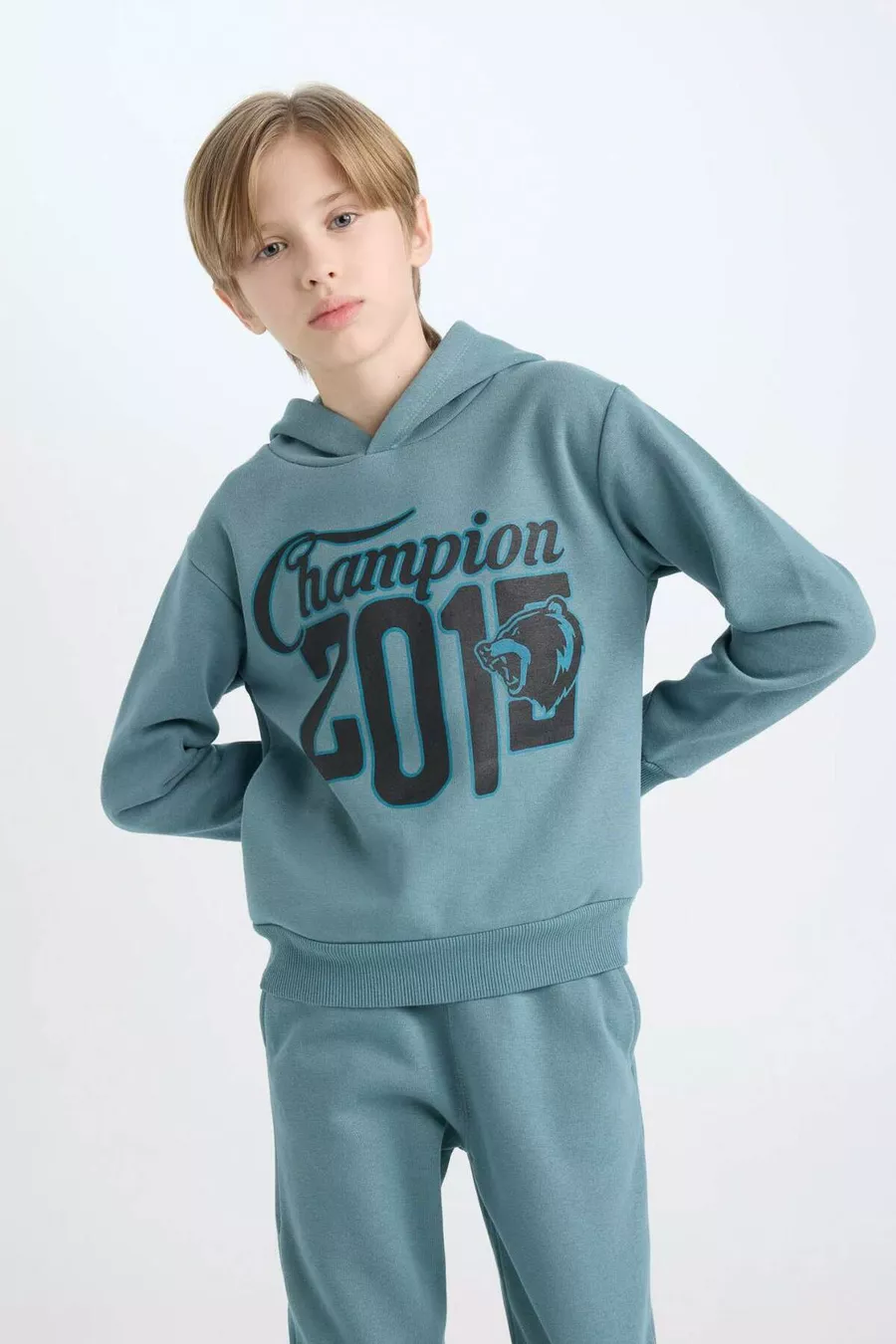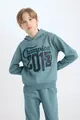 Set da 2 pezzi per bambino maschio Felpa con cappuccio stampata Pantaloni della tuta con elastico in vita WN