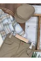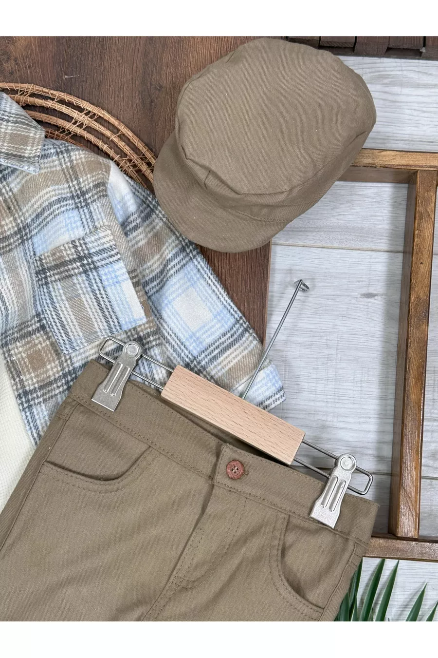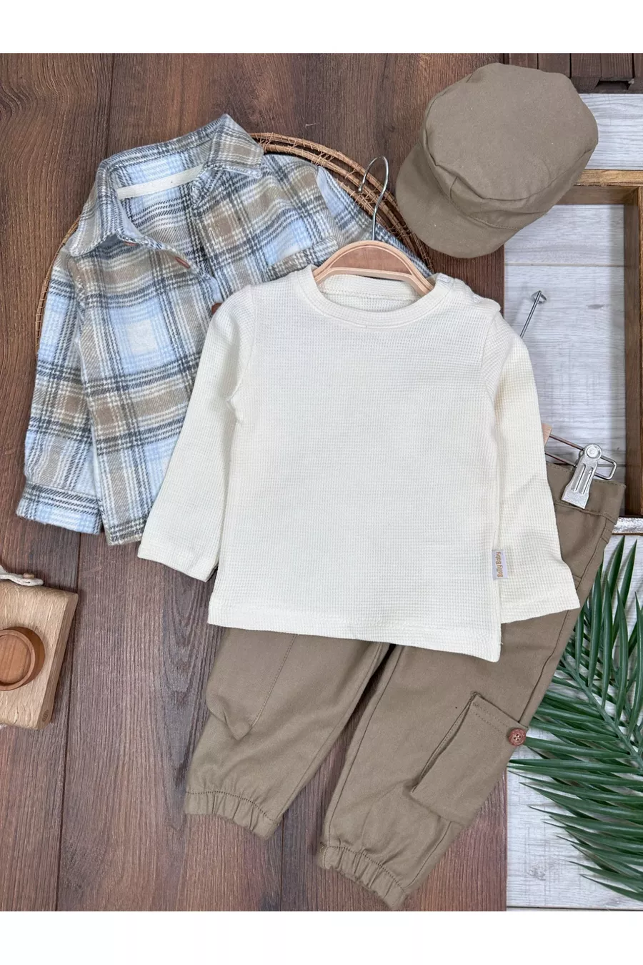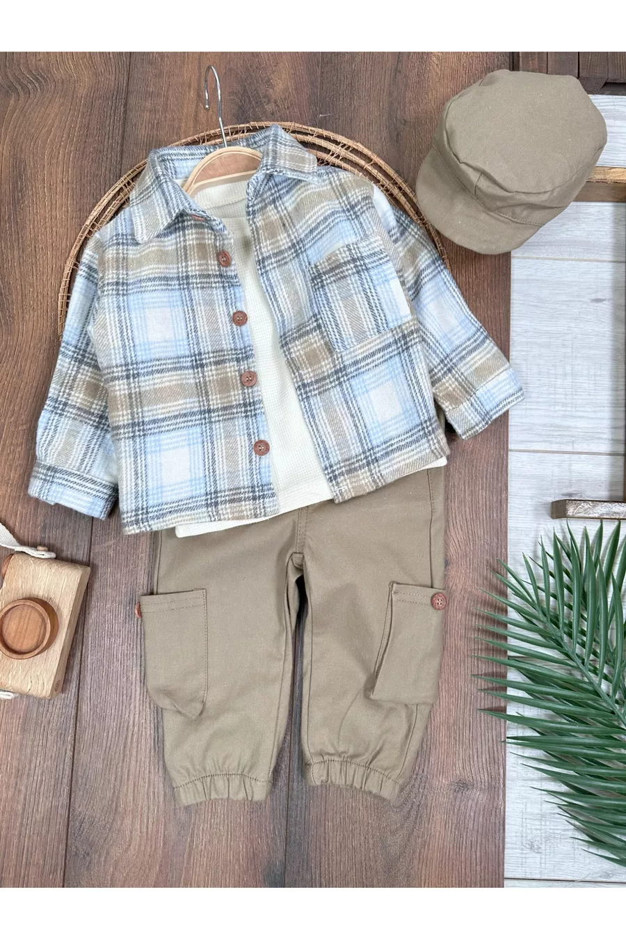 Set da 4 pezzi per neonati/bambini maschi con camicia da boscaiolo, cappello, maglione waffle, pantaloni cargo con bretelle
