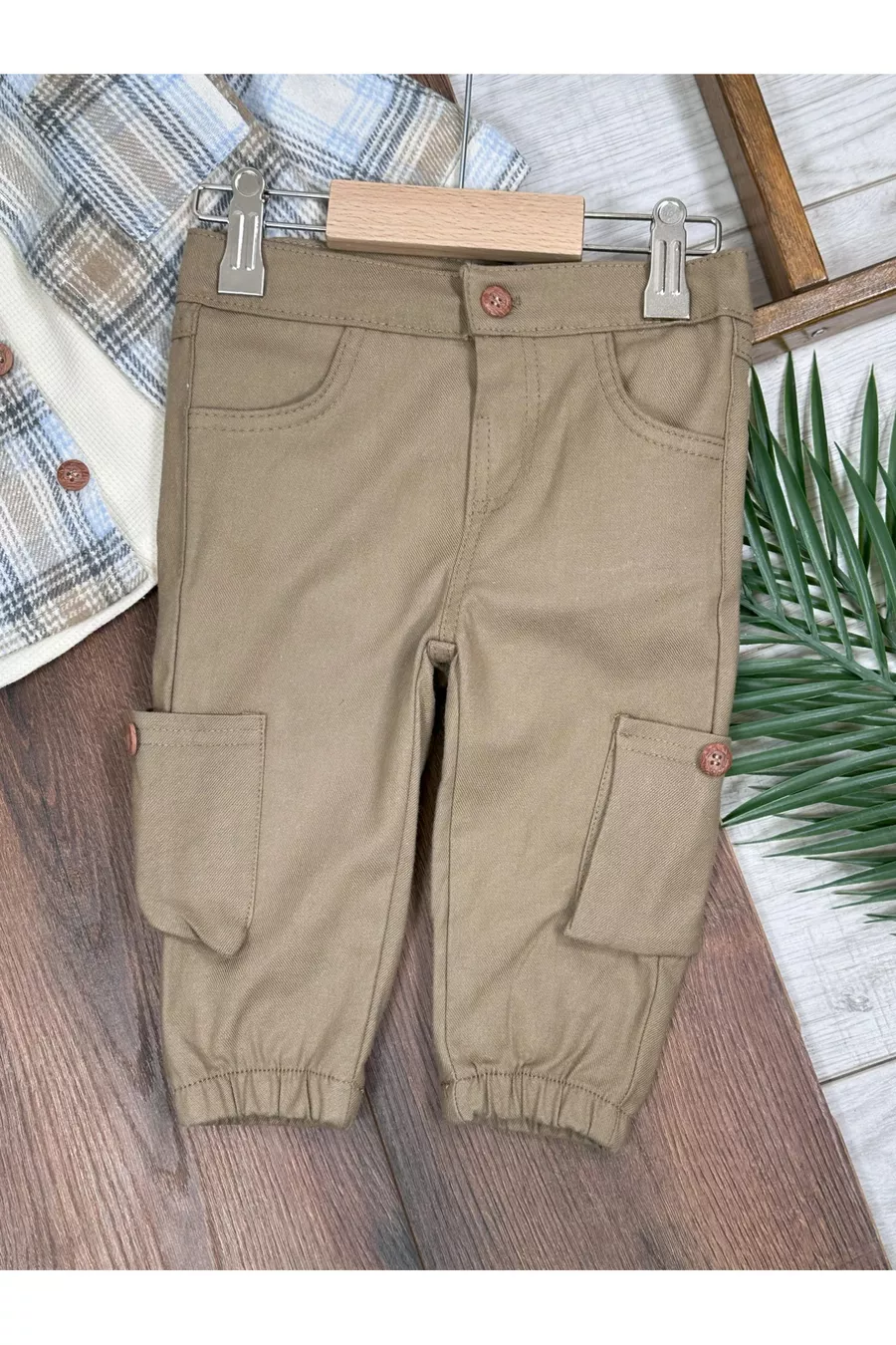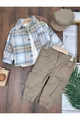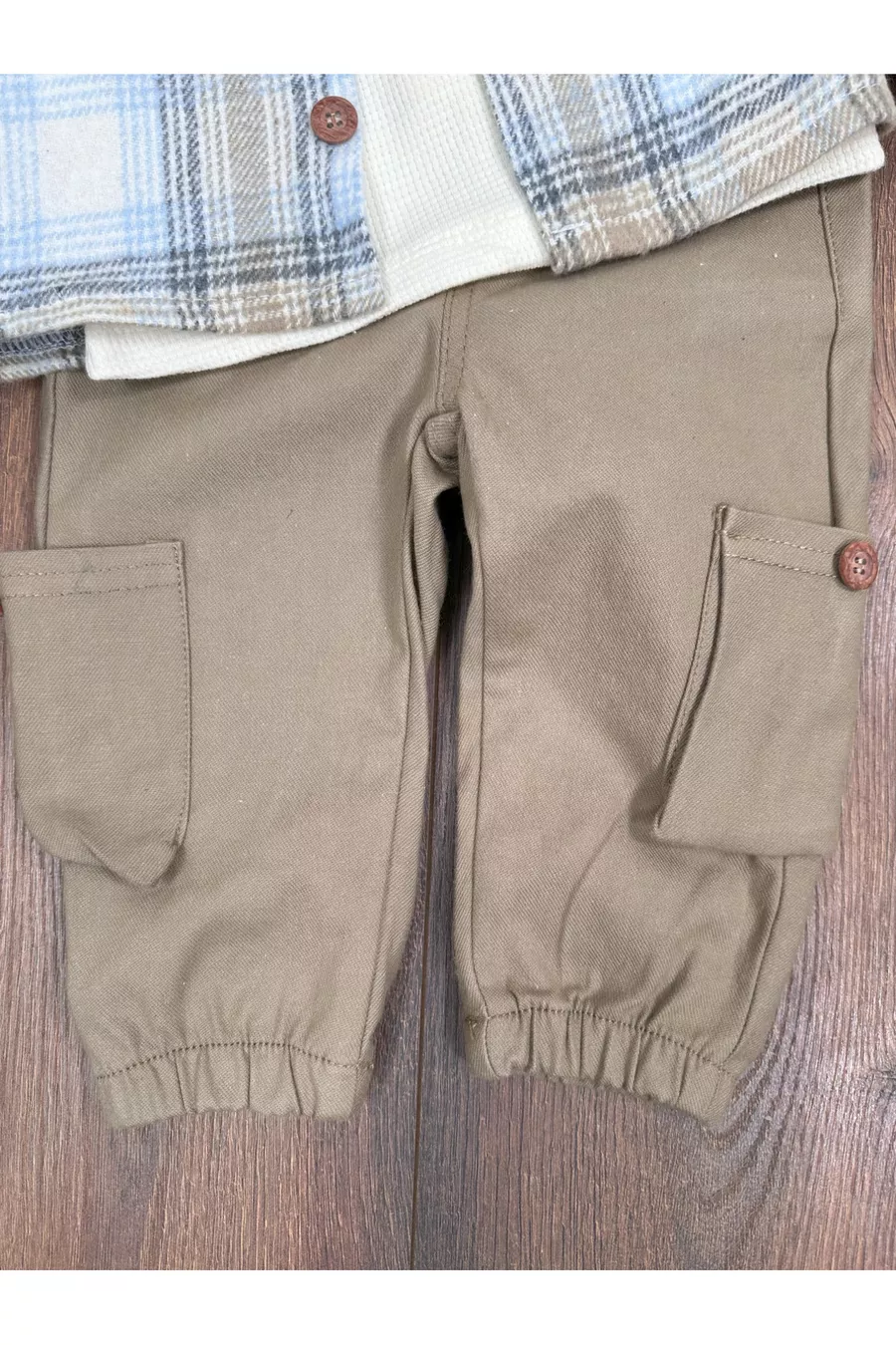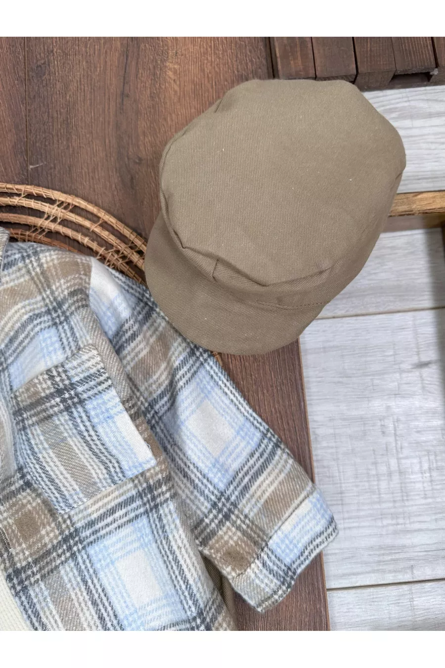 Set da 4 pezzi per neonati/bambini maschi con camicia da boscaiolo, cappello, maglione waffle, pantaloni cargo con bretelle