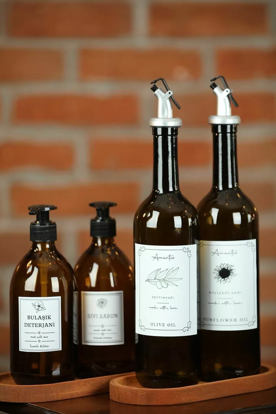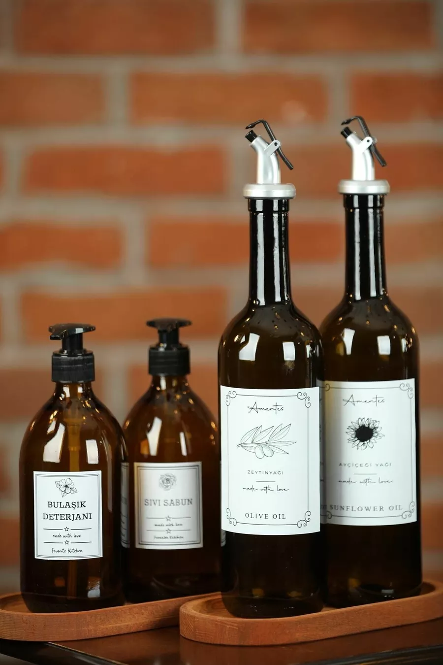 Set da Cucina con Porta Olio e Sapone in Ambra 2 pezzi, ml con Stand in Legno da 6 posti