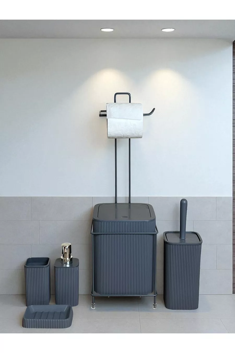 Set da bagno 6 pezzi con portarifiuti metallico, porta carta igienica e spazzola per WC, con sapone solido - liquido