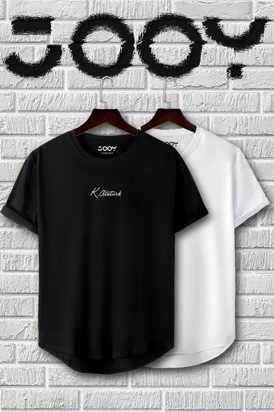 Set da 2 magliette ovale bianco e nero con stampa della firma di Atatürk
