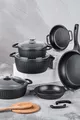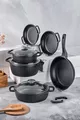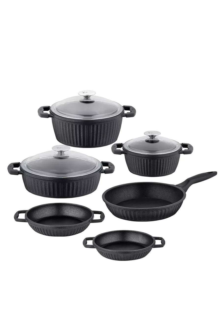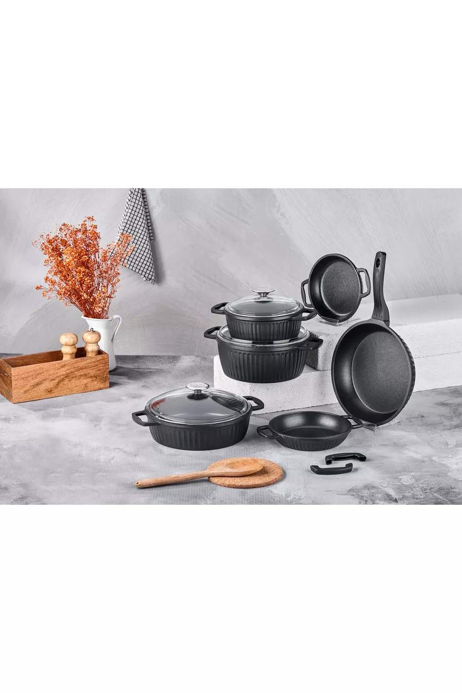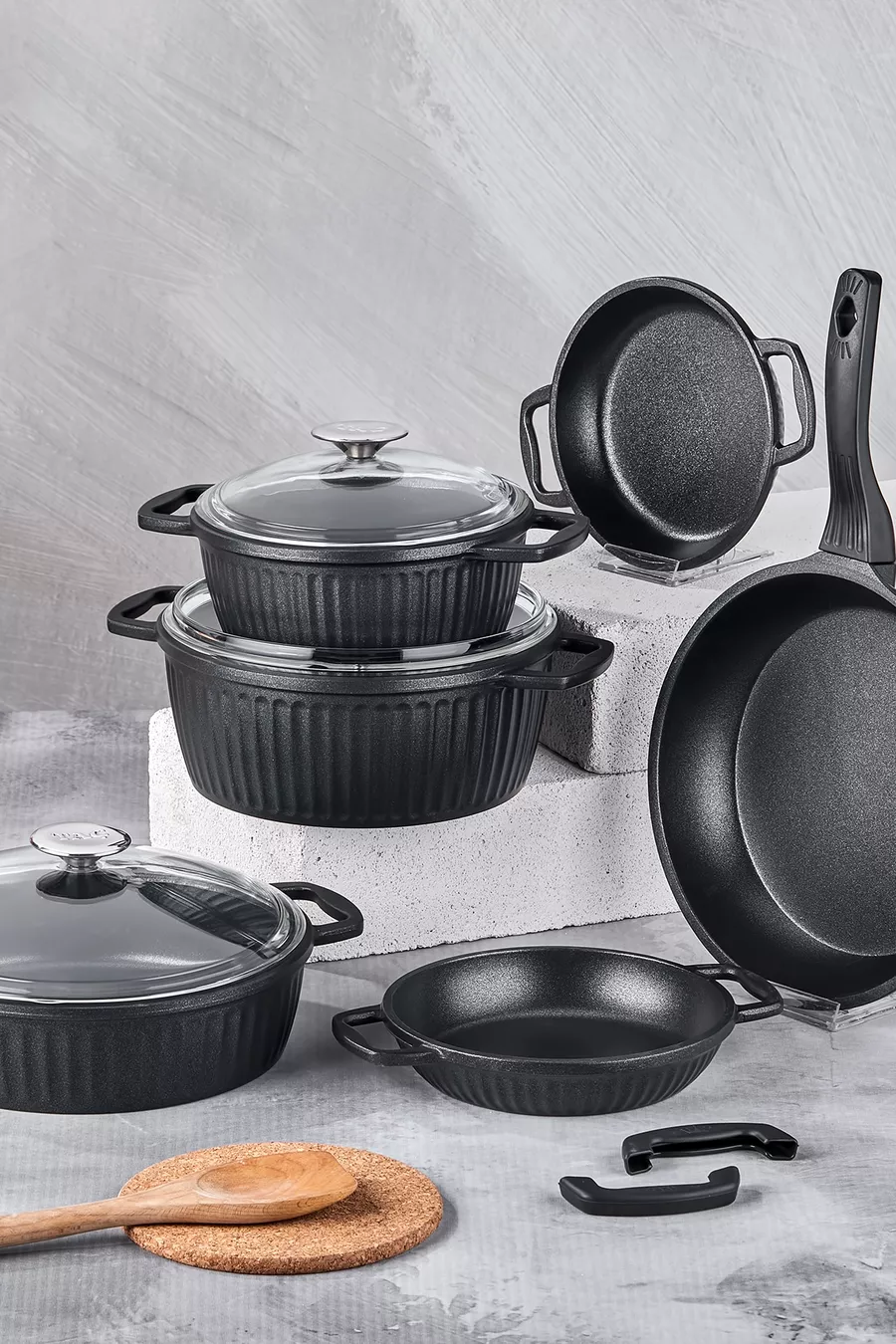 Colore: Nero Dimensione: 26 cm Capacità: 2 L Caratteristica: Adatto al forno Materiale esterno: Ghisa Materiale interno: Ghisa Numero di pezzi: 9 Origine: TR Materiale: Ghisa