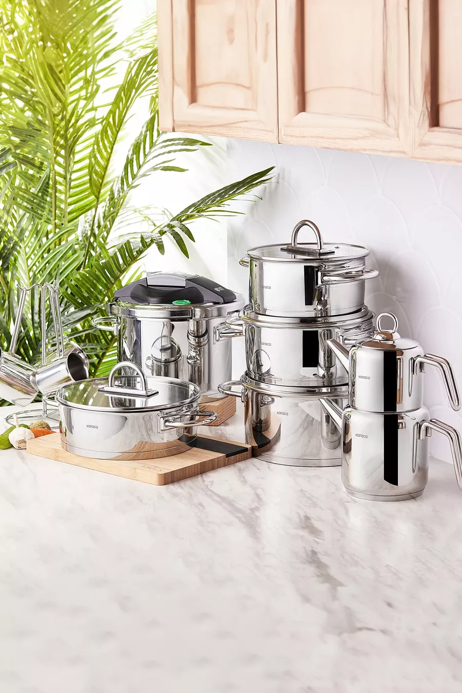 Colore: Argento Dimensione: 24 cm Capacità: 6 L Caratteristica: Utilizzabile su piano a induzione Materiale esterno: Acciaio Materiale interno: Acciaio Numero di pezzi: 17 Origine: TR Materiale: Metallo