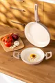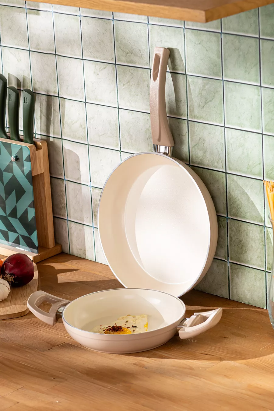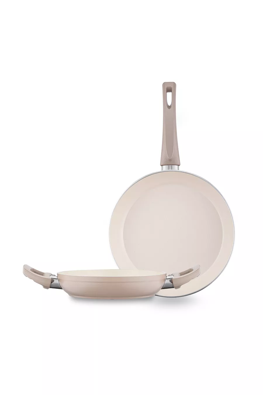 Dimensione/Size: 26 cm Numero di pezzi: 2 Caratteristica: Fondo antiaderente Tipo di prodotto: Padella per friggere Materiale esterno: Ceramica Materiale interno: Ceramica Colore: Rosegold Paese d'origine: TR Materiale: Granito Colore: Crema