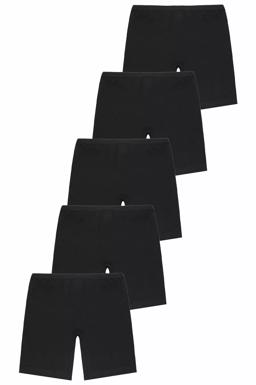 Set di 5 Boxer Lunghi Neri in Cotone Elastico per Bambina