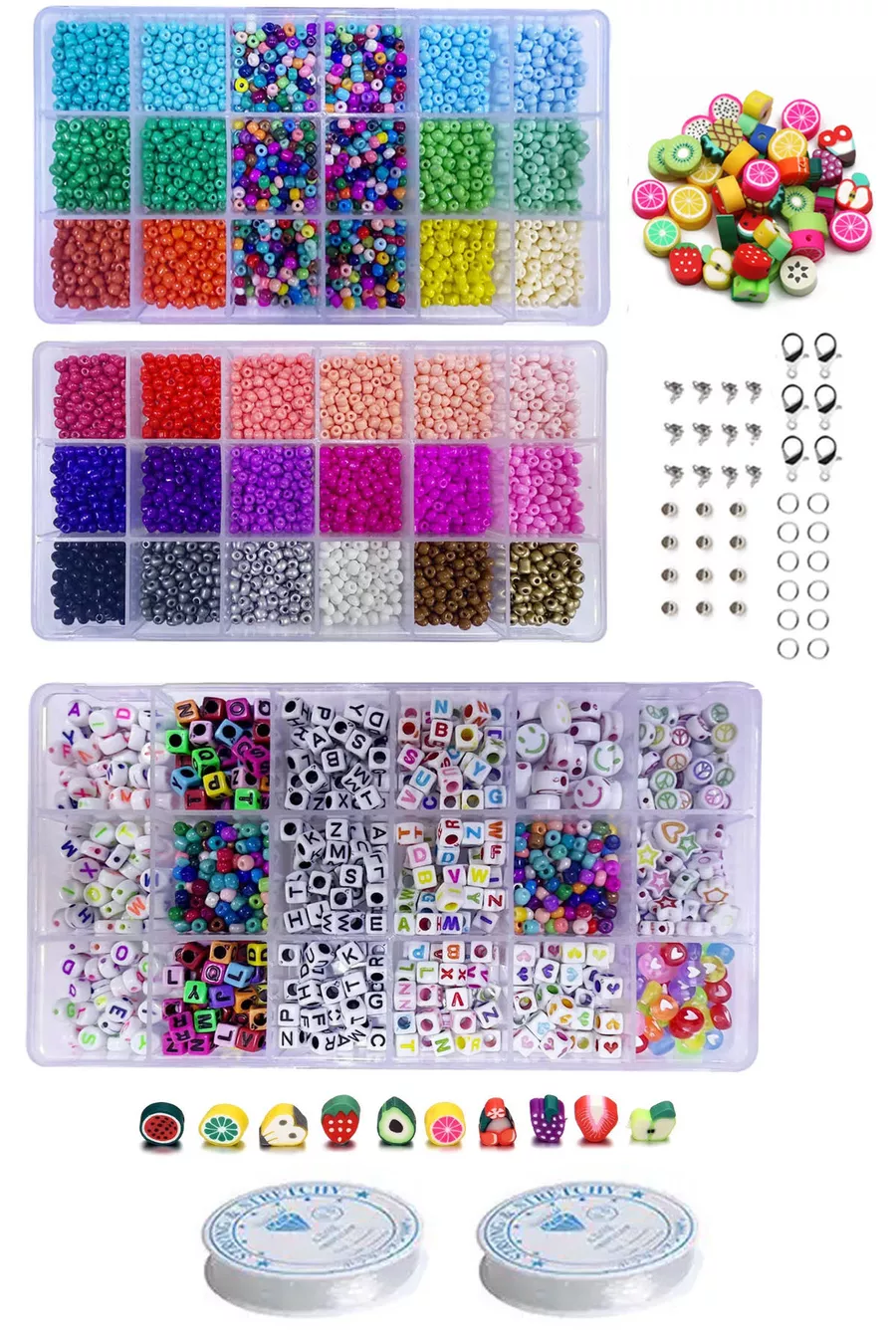 Set di perline per gioielli con 3 scatole Mega , perline di sabbia e perline con lettere, set hobby
