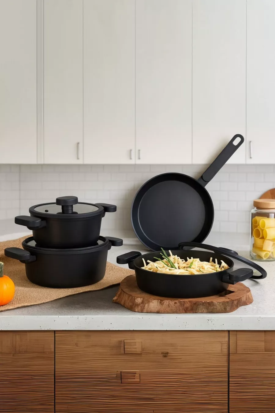 Set di 7 Pentole in Granito Valeria - Nero
