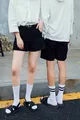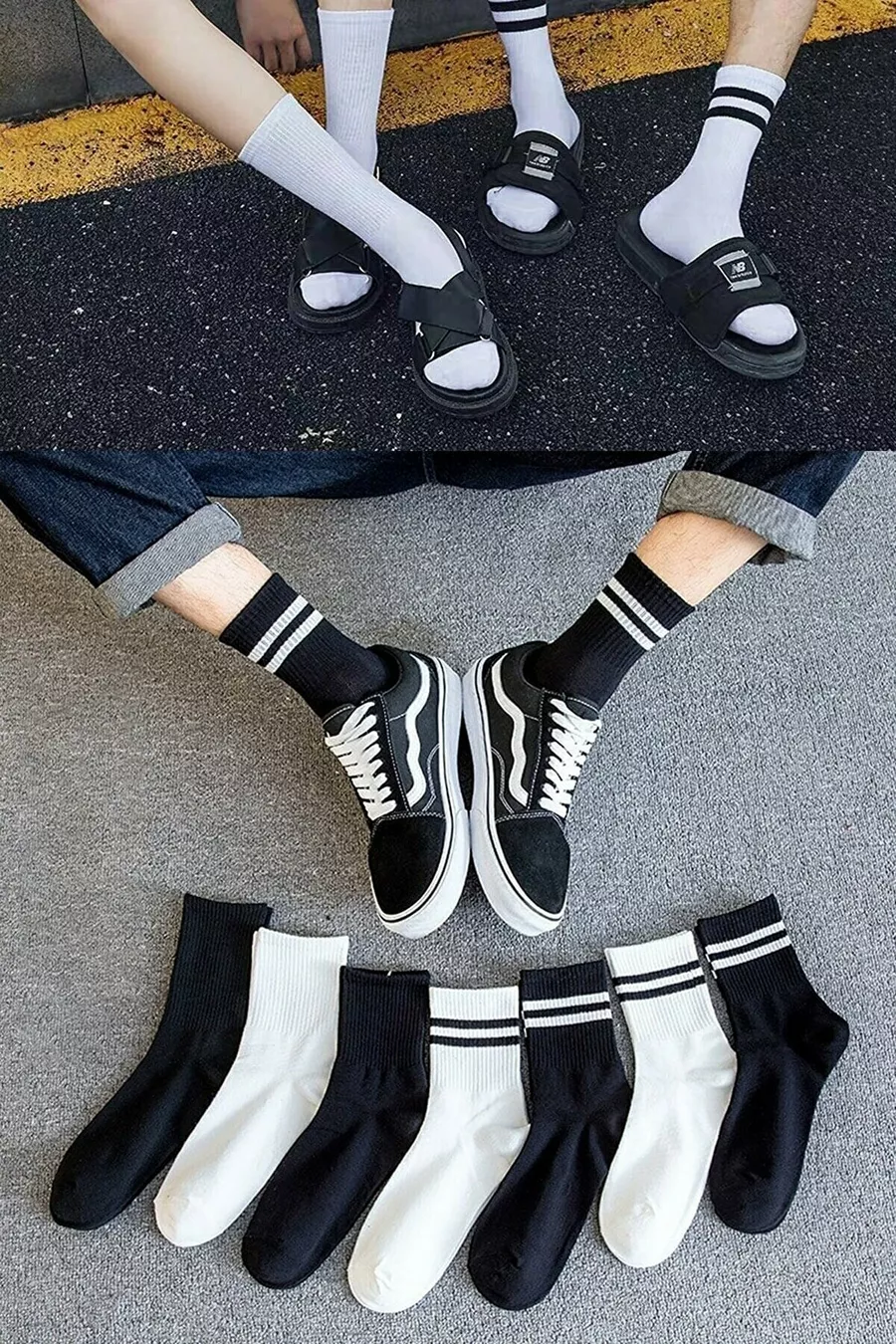 Set di 7 paia di calzini sportivi da college unisex a righe bianche e nere e lisci