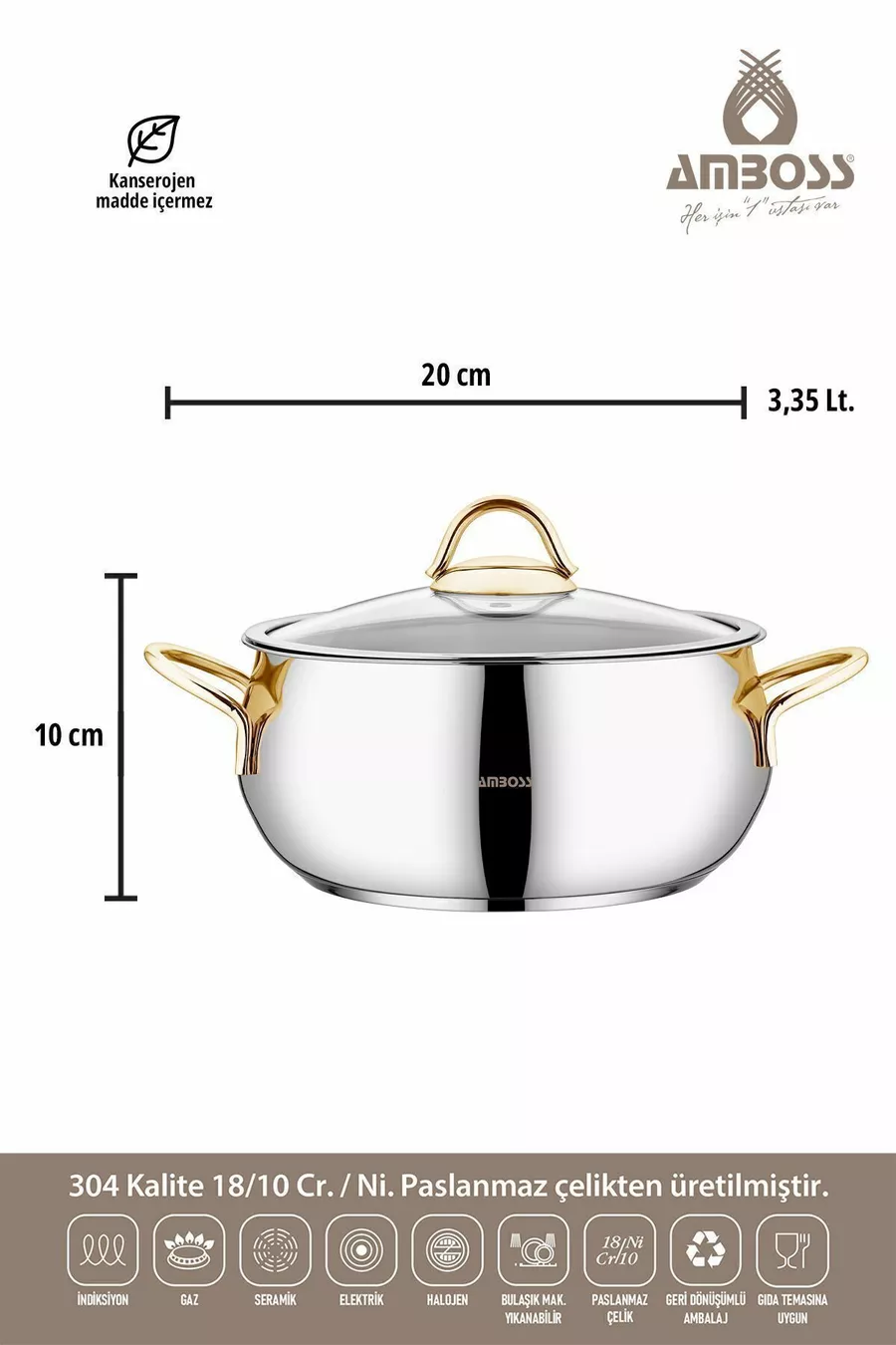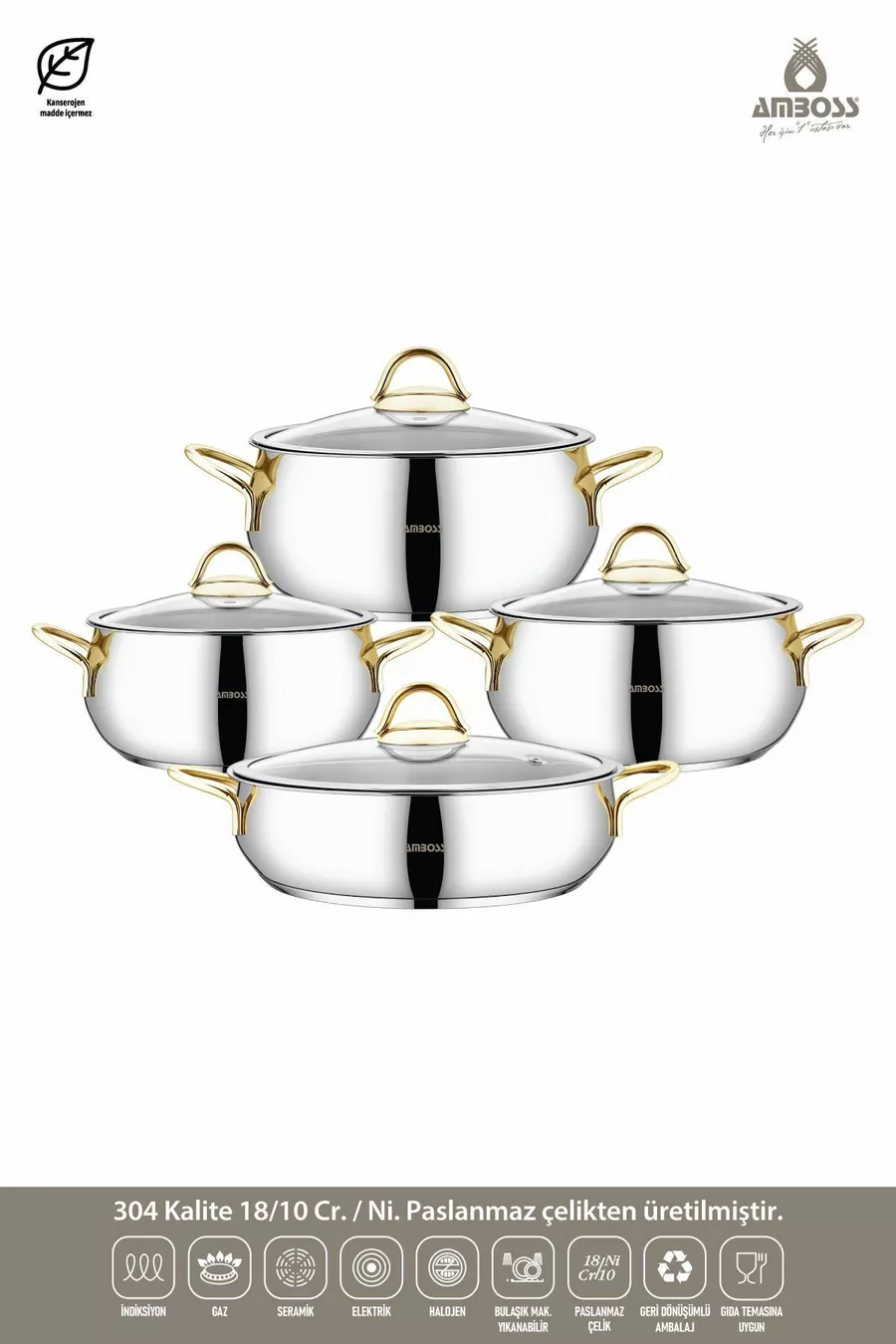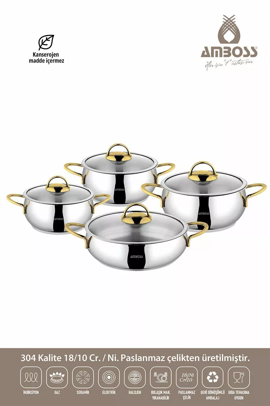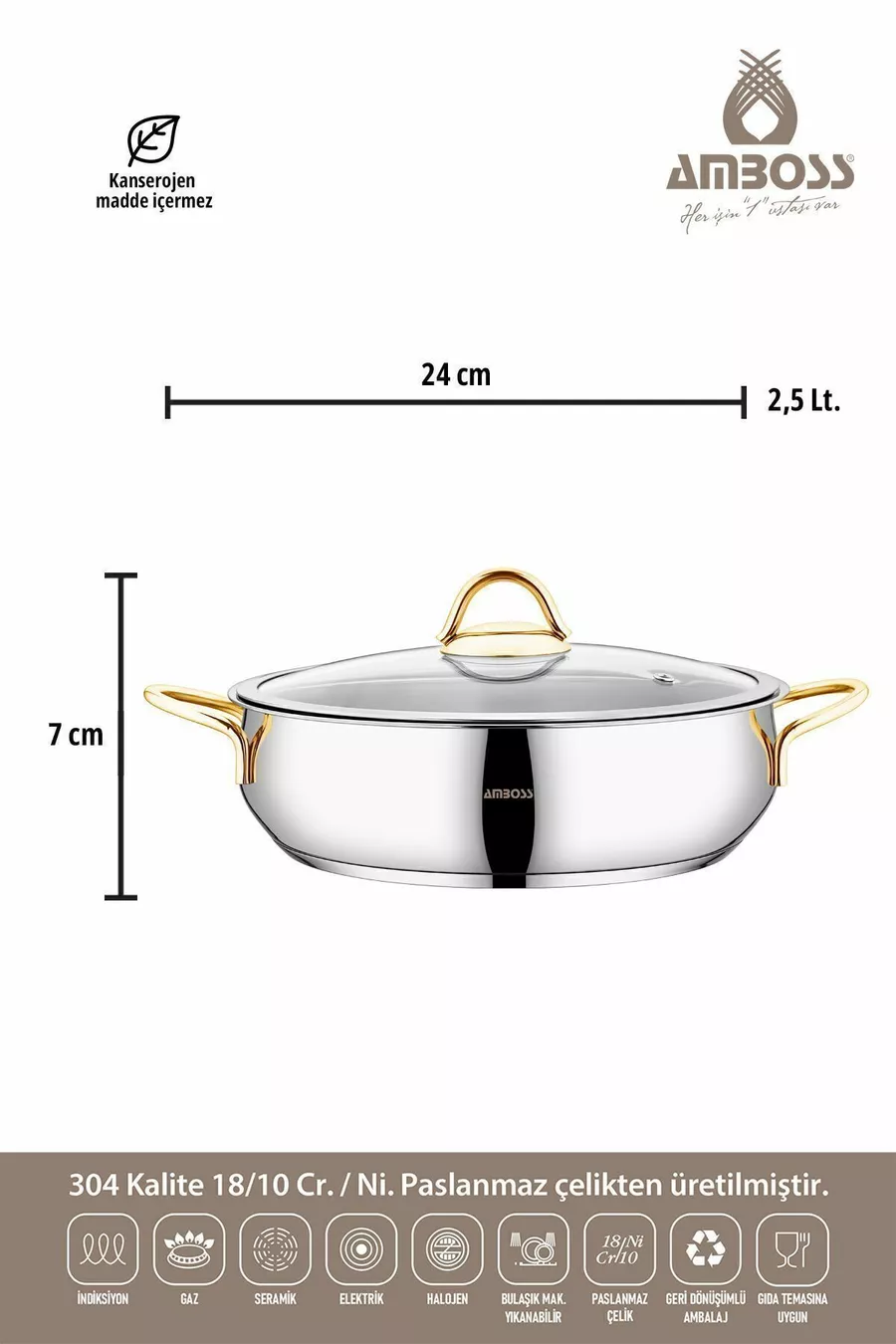 Colore: Oro Dimensione/Taglia: 24 cm Capacità: 2,5 L Caratteristica: Utilizzabile su piano a induzione Materiale esterno: Acciaio Materiale interno: Acciaio Numero di pezzi: 8 Materiale: Vetro