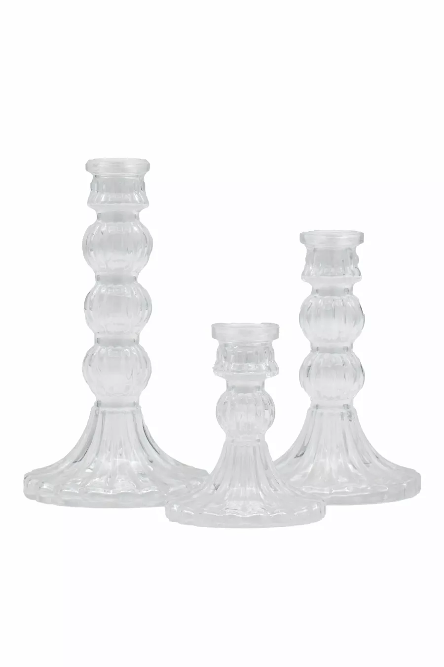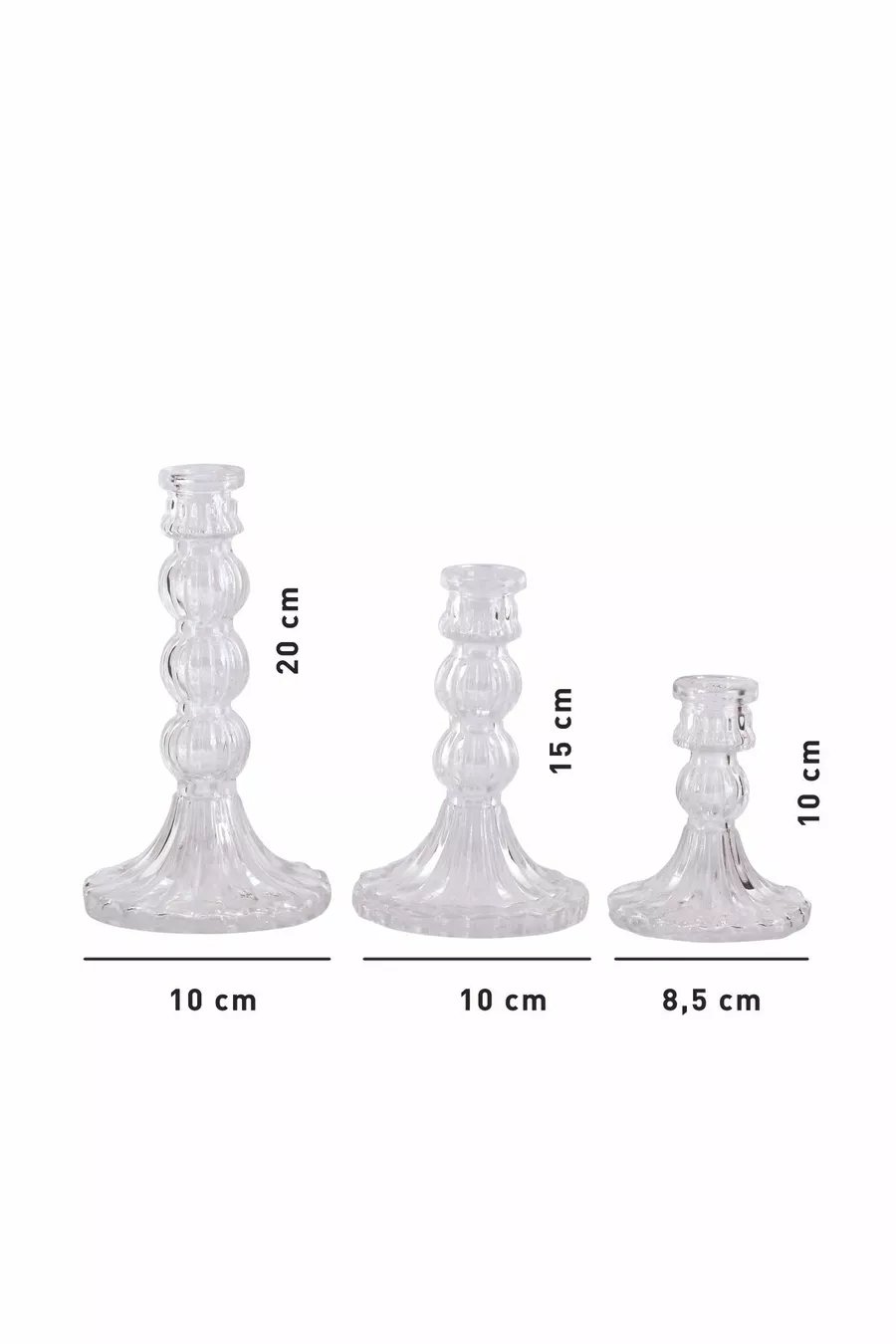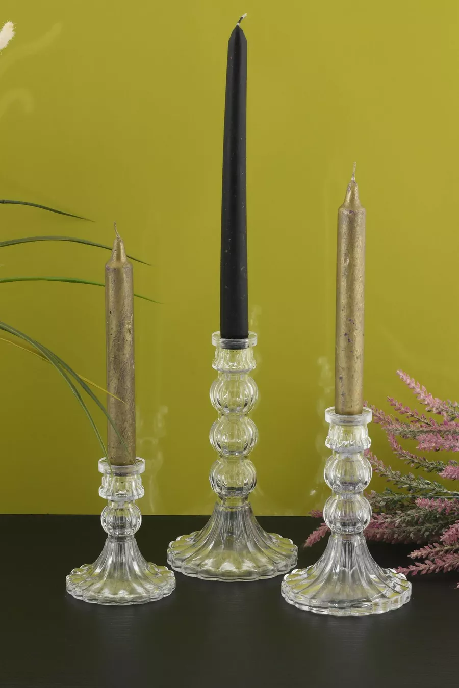 Set di 3 Candelabri in Vetro MIA, Portacandele Decorativo dall'Aspetto Cristallino