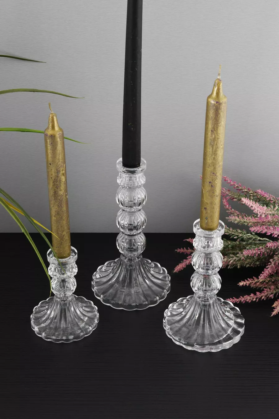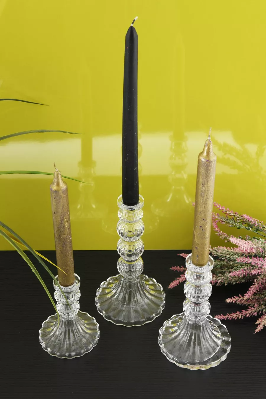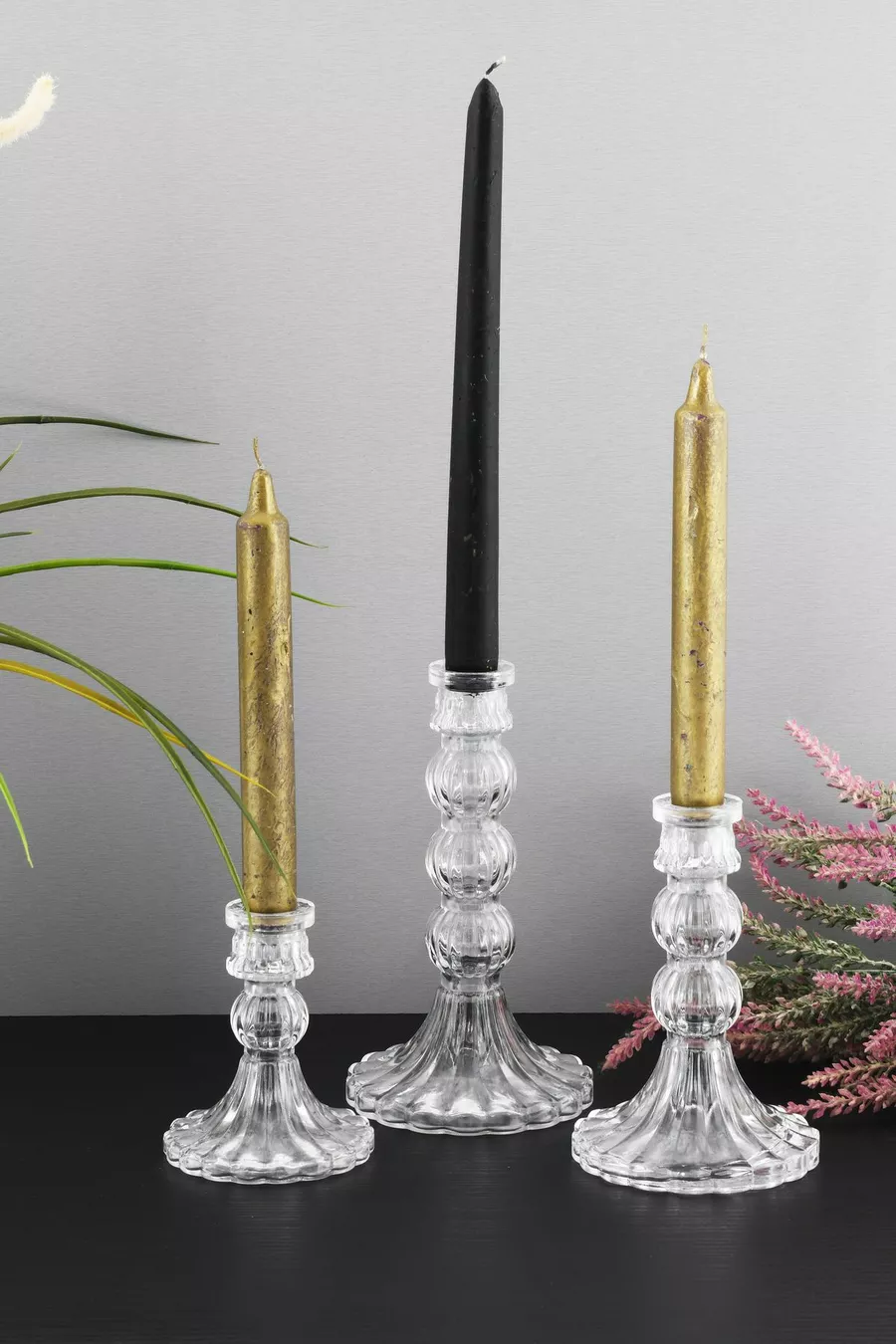 Set di 3 Candelabri in Vetro MIA, Portacandele Decorativo dall'Aspetto Cristallino
