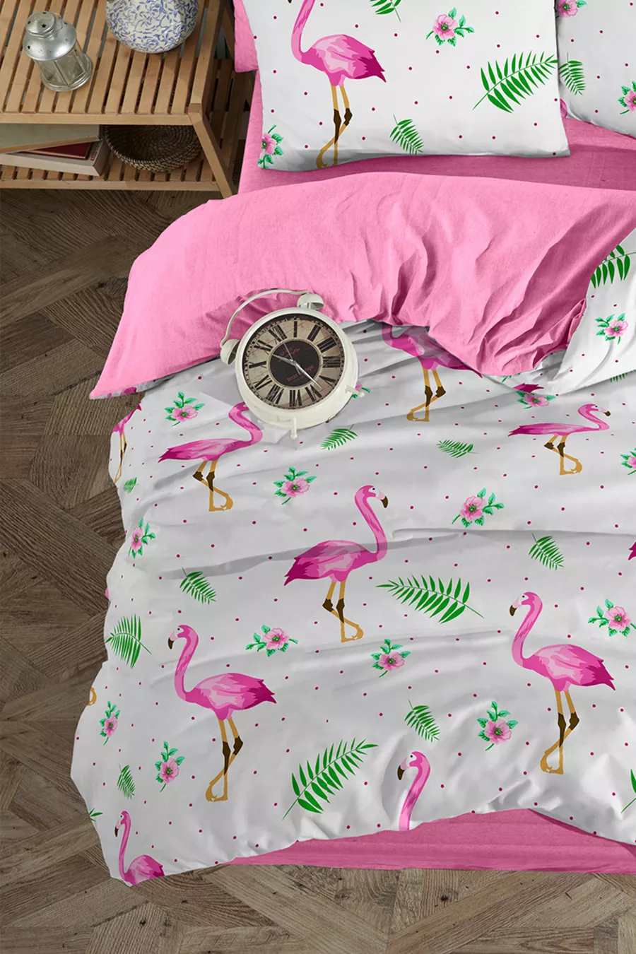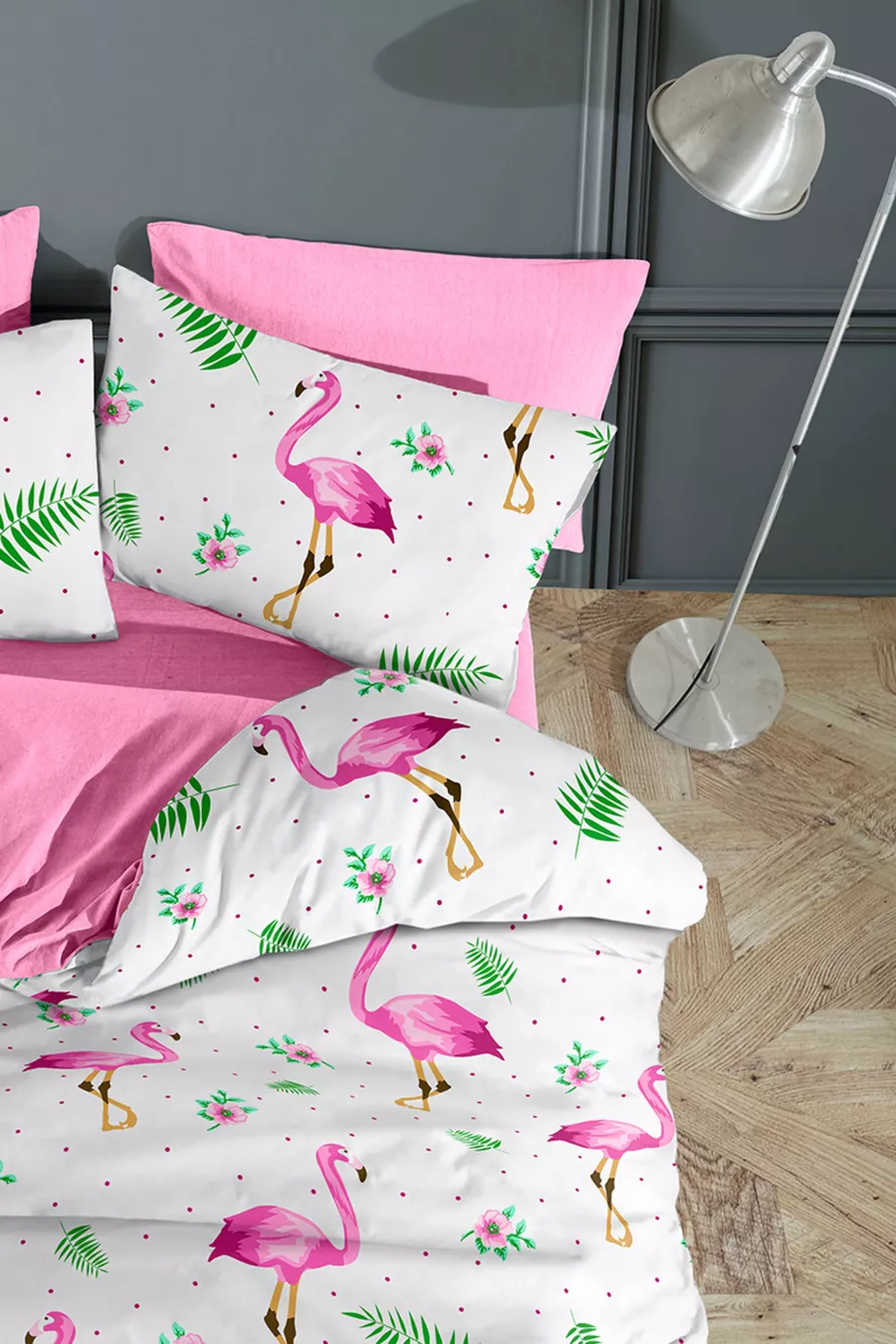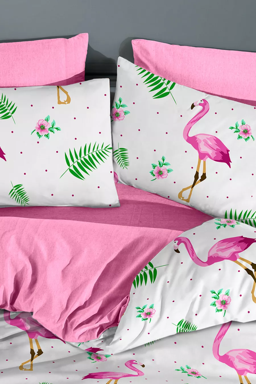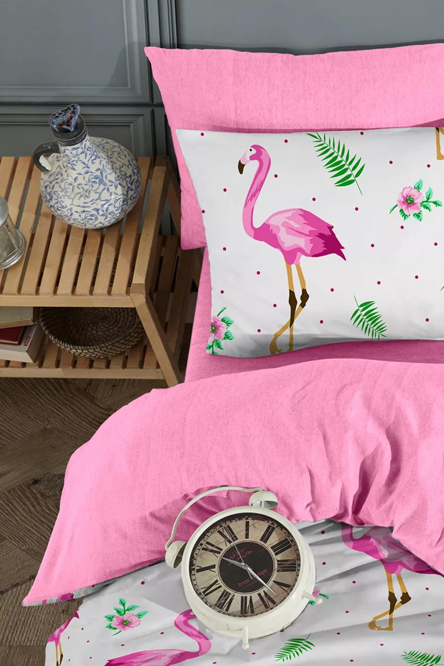 Set di biancheria da letto una piazza con stampa fenicottero, lenzuolo con angoli, reversibile