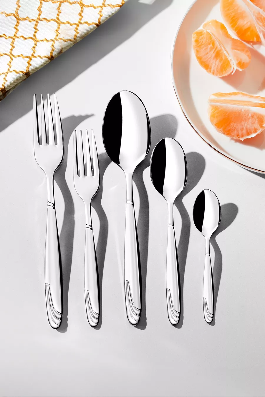 Materiale: Acciaio Numero di pezzi: 60 Colore: Argento Capacità: Per 12 persone Tipo di prodotto: Set di coltelli Origine: TR Durata della garanzia: 10 anni Istruzioni per la manutenzione (Contatto con alimenti): Sicuro per il contatto con alimenti.