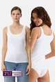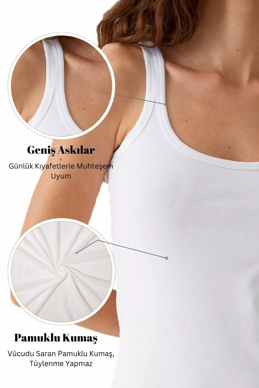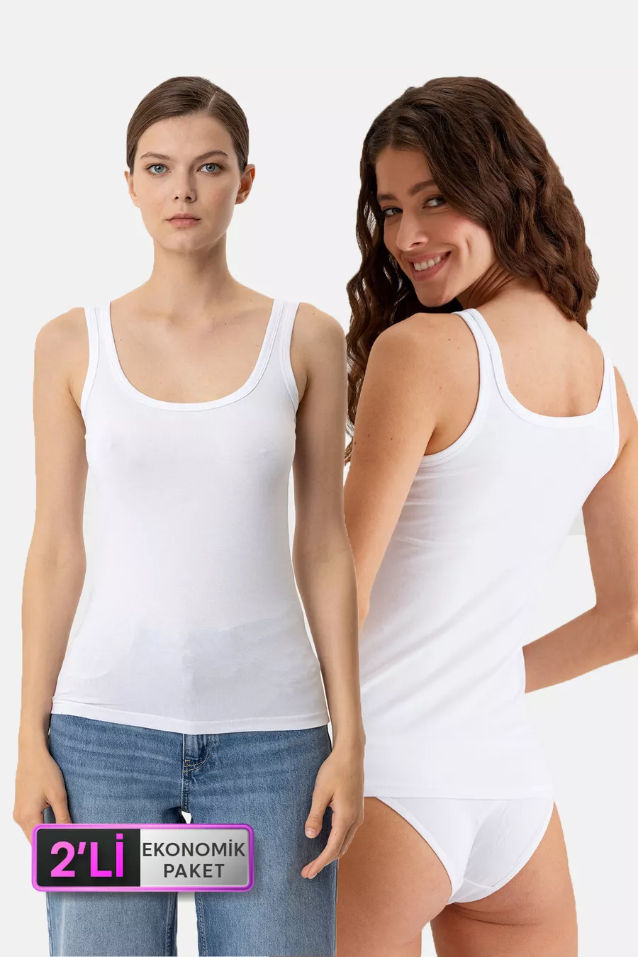 Set di 2 Canottiere Economiche Bianche con Scollo Quadrato e Spalline Larghe in Cotone Basic