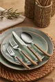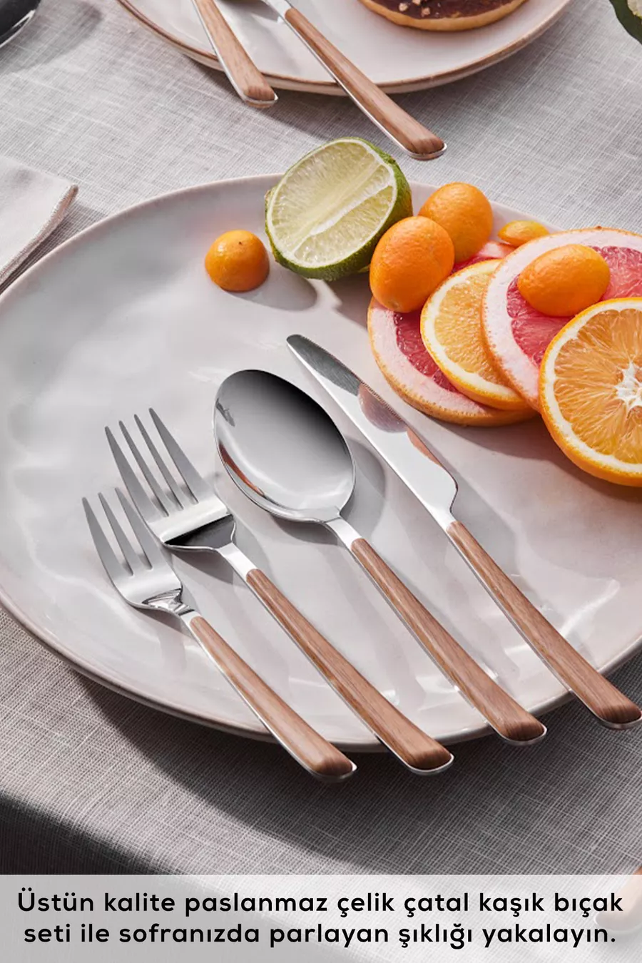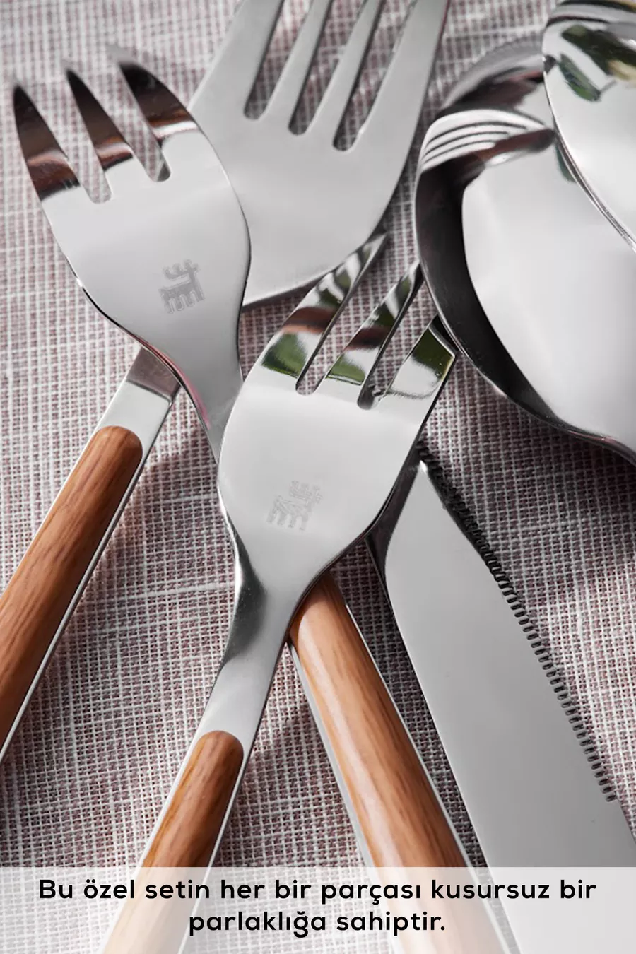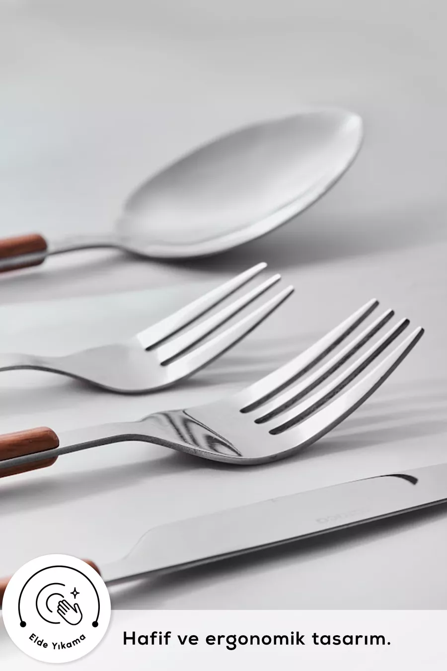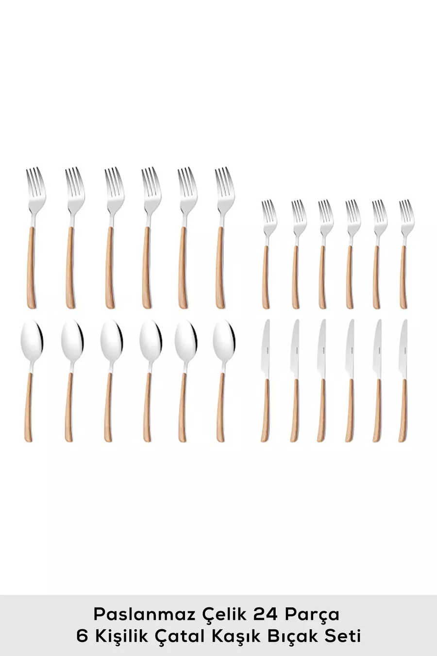 Materiale: Acciaio Numero di pezzi: 24 Colore: Marrone Capacità: 6 persone Tipo di prodotto: Set di coltelli Provenienza: CN Periodo di garanzia: 2 anni Istruzioni per la manutenzione (contatto con alimenti): Lavare a mano.