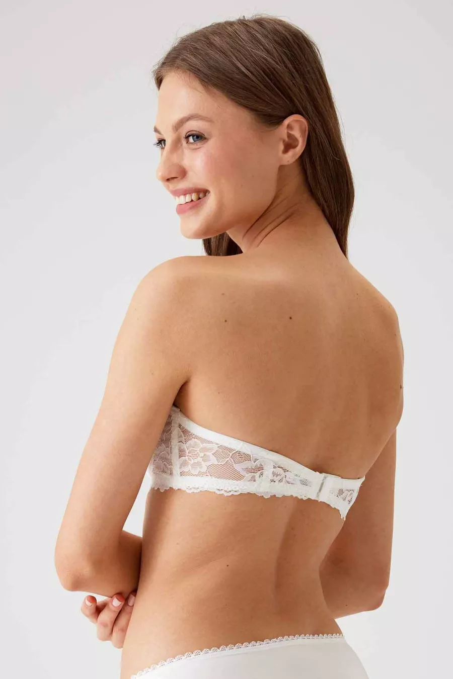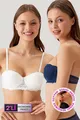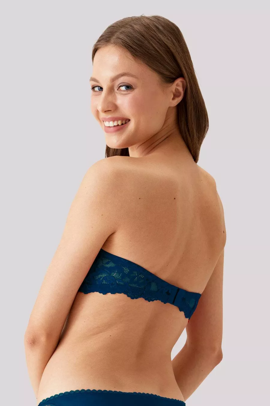Set di Reggiseni Economico 2 Pezzi Ecru Blu Scuro -2 Siena con Ferretto, Senza Sostegno, Senza Spalline, in Pizzo