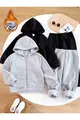 Set di 4 pezzi per bambini ragazzo-ragazza: cardigan con zip e tuta in grigio e nero con fodera in pelliccia sintetica