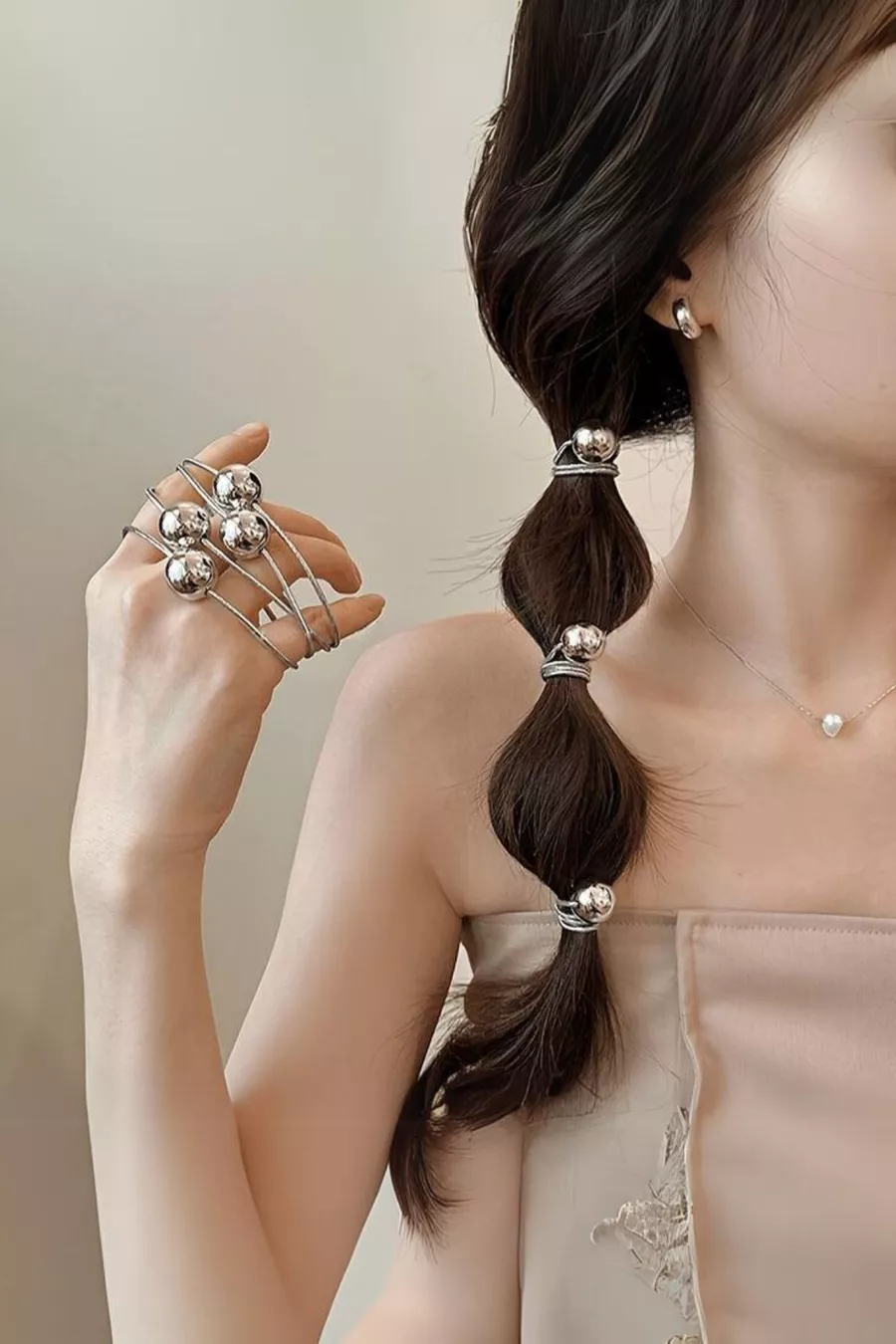 Motivo: Liscio Componente del materiale: Perline color argento Materiale: Filato metallico Colore: Argento Taglia: Taglia unica