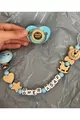 Set di Catenella per Ciuccio in Ambra Blu Personalizzata e Ciuccio con Tettarella in Silicone (0-6 MESI) -