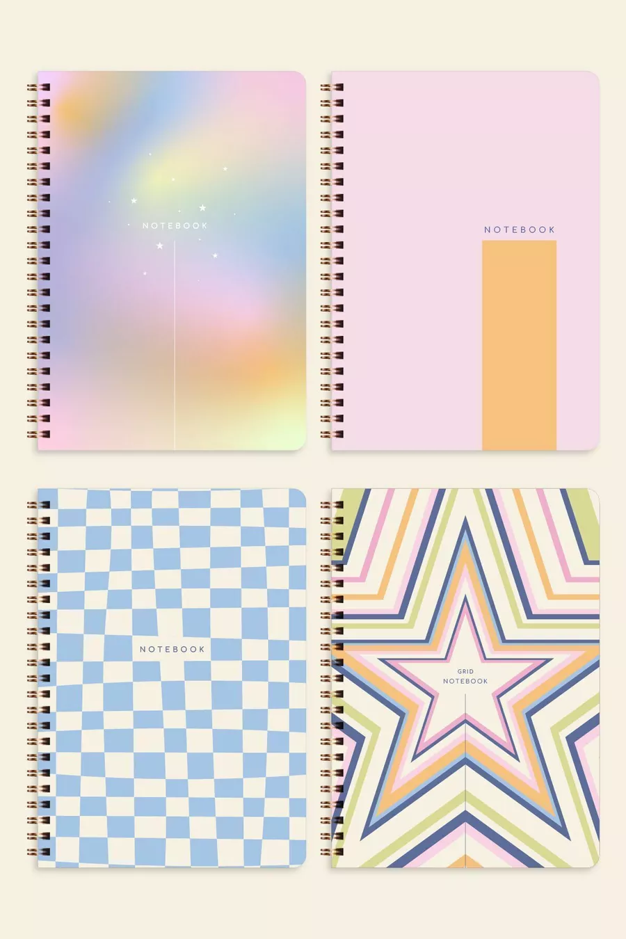 Set di 4 quaderni scolastici a copertina rigida con spirale, quadrettati, fogli - con programma delle lezioni - colorati