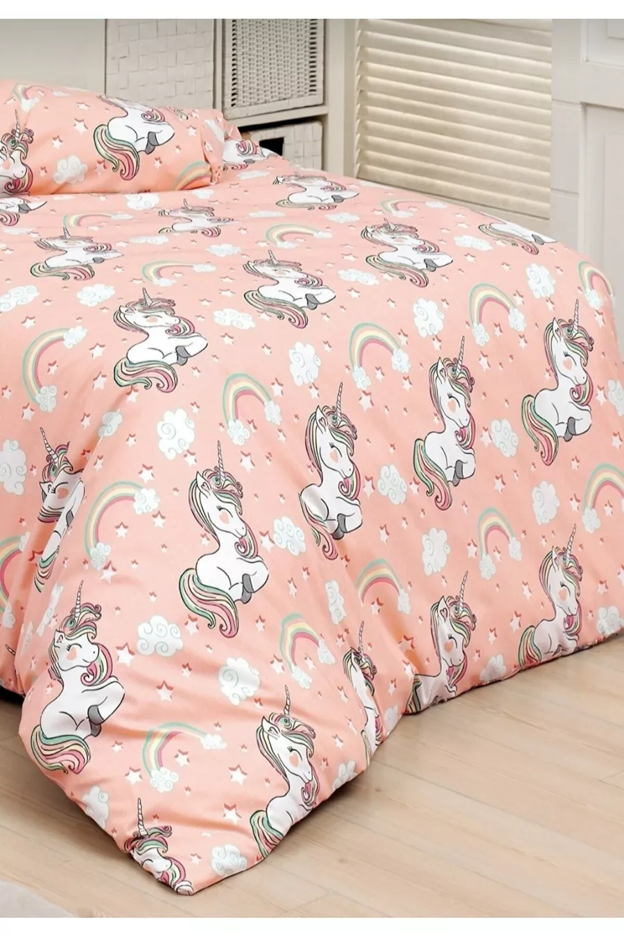 Set di Biancheria da Letto Singolo per Bambina con Lenzuolo Elastico in Cotone Unicorn (Fitted)