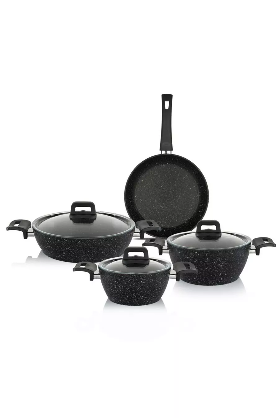 Colore: Nero Caratteristica: Fondo antiaderente Materiale esterno: Granito Materiale interno: Granito Numero di pezzi: 7 Provenienza: TR Materiale: Granito