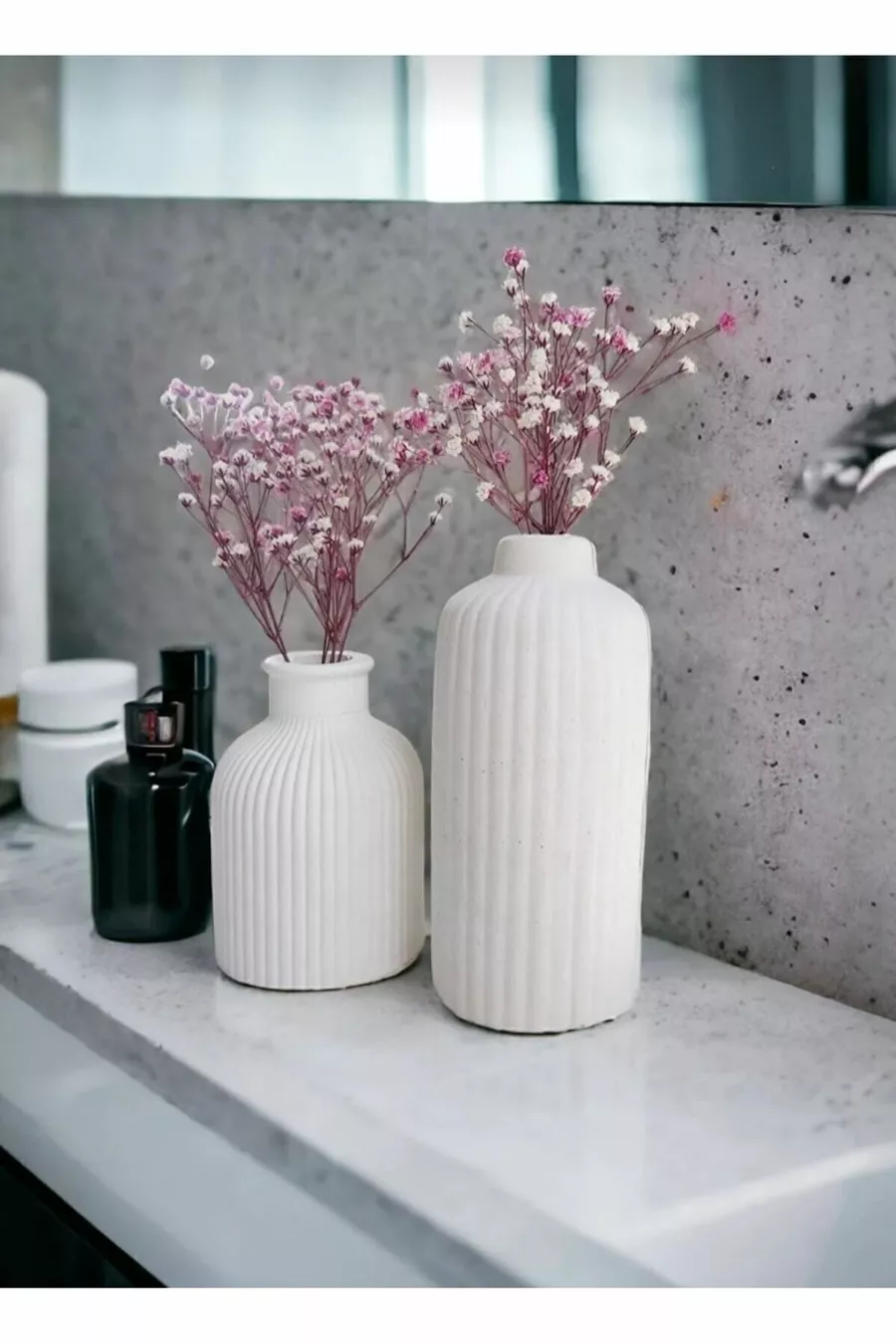 Set di Vasi in Cemento Decorative Stile Scandinavo Mini e Alto